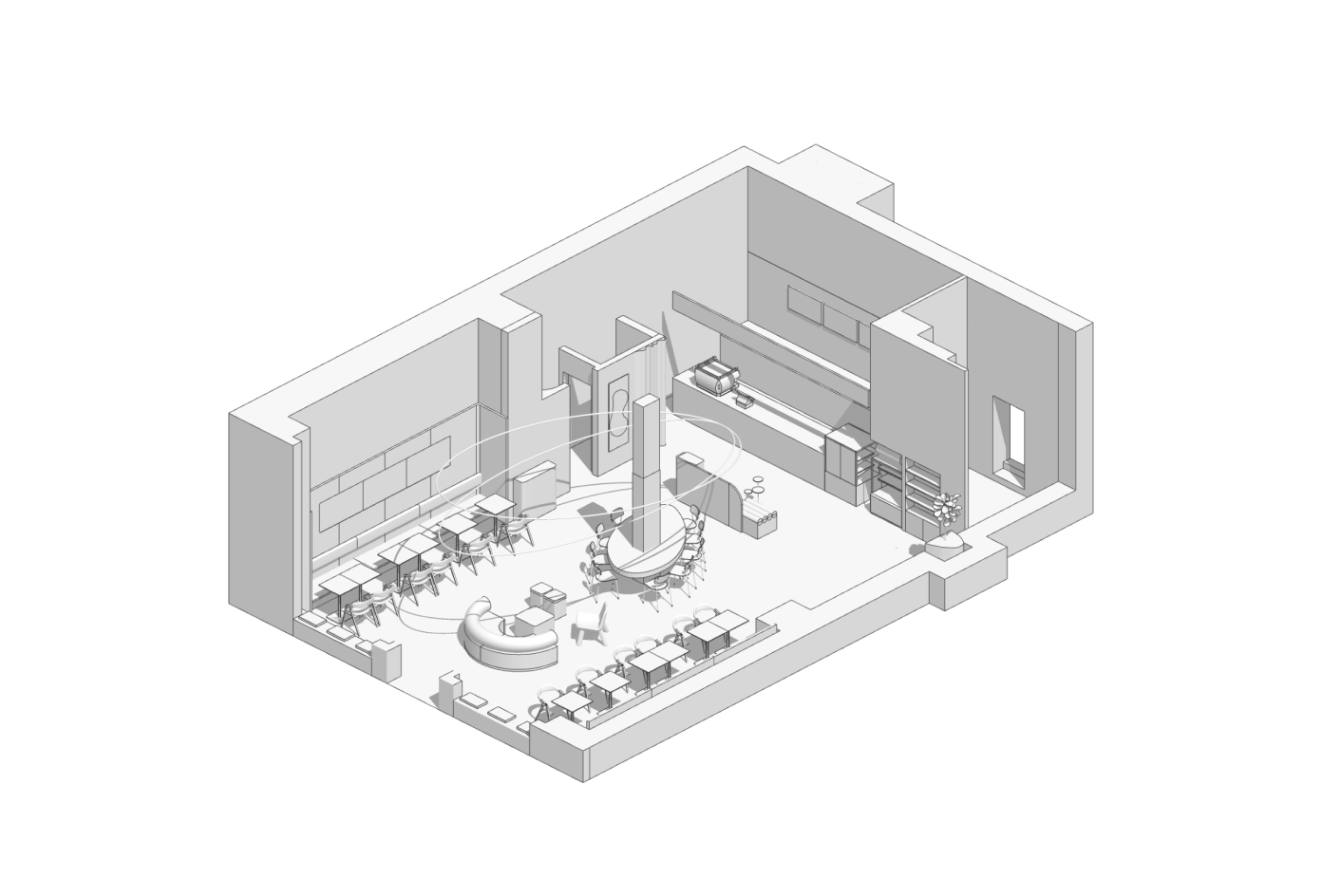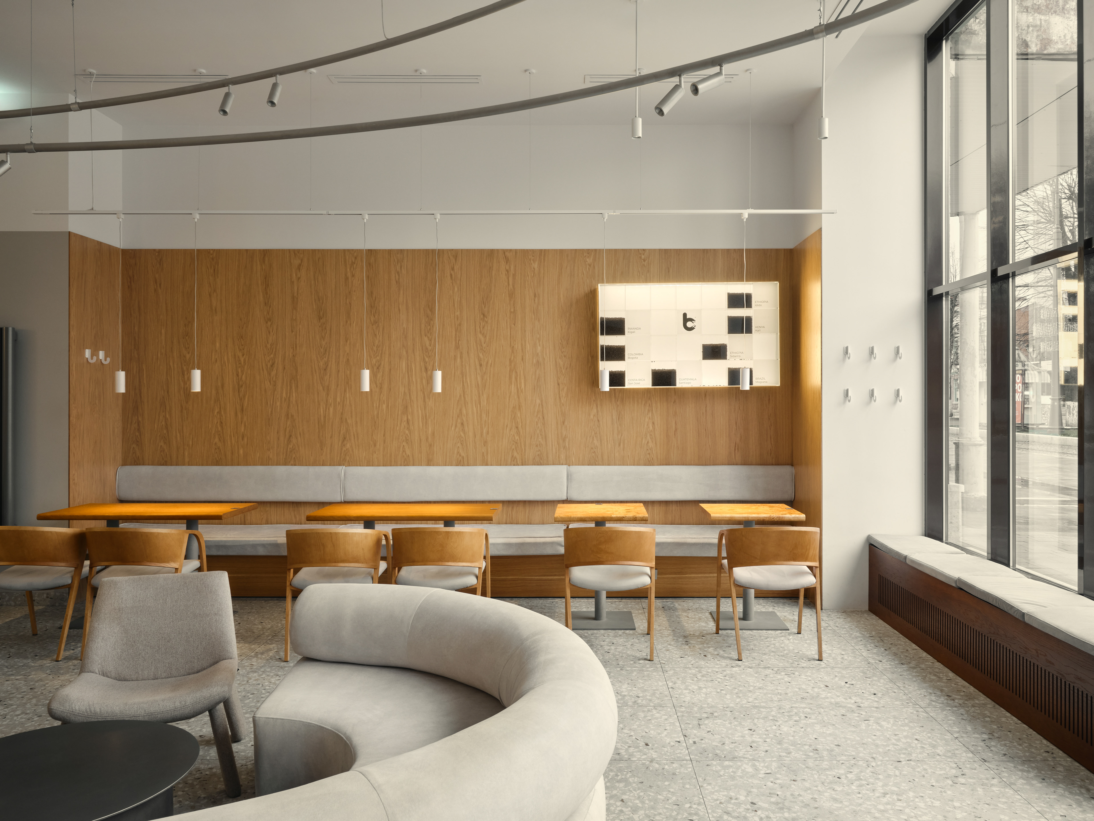 At the time of this project, there were already five Balance Coffee locations with a sixth being planned in a new location. Our task was to develop the seventh, flagship location. Before implementing the design of each coffee shop, a thorough analysis of the area and target audience is conducted. Since another coffee shop was already being developed in the same city with its own unique typology, it was especially important to conduct research on the flagship location. We were working with the most attractive spot in the city, the main pedestrian thoroughfare. It was crucial to create a point of attraction while catering to multiple scenarios.