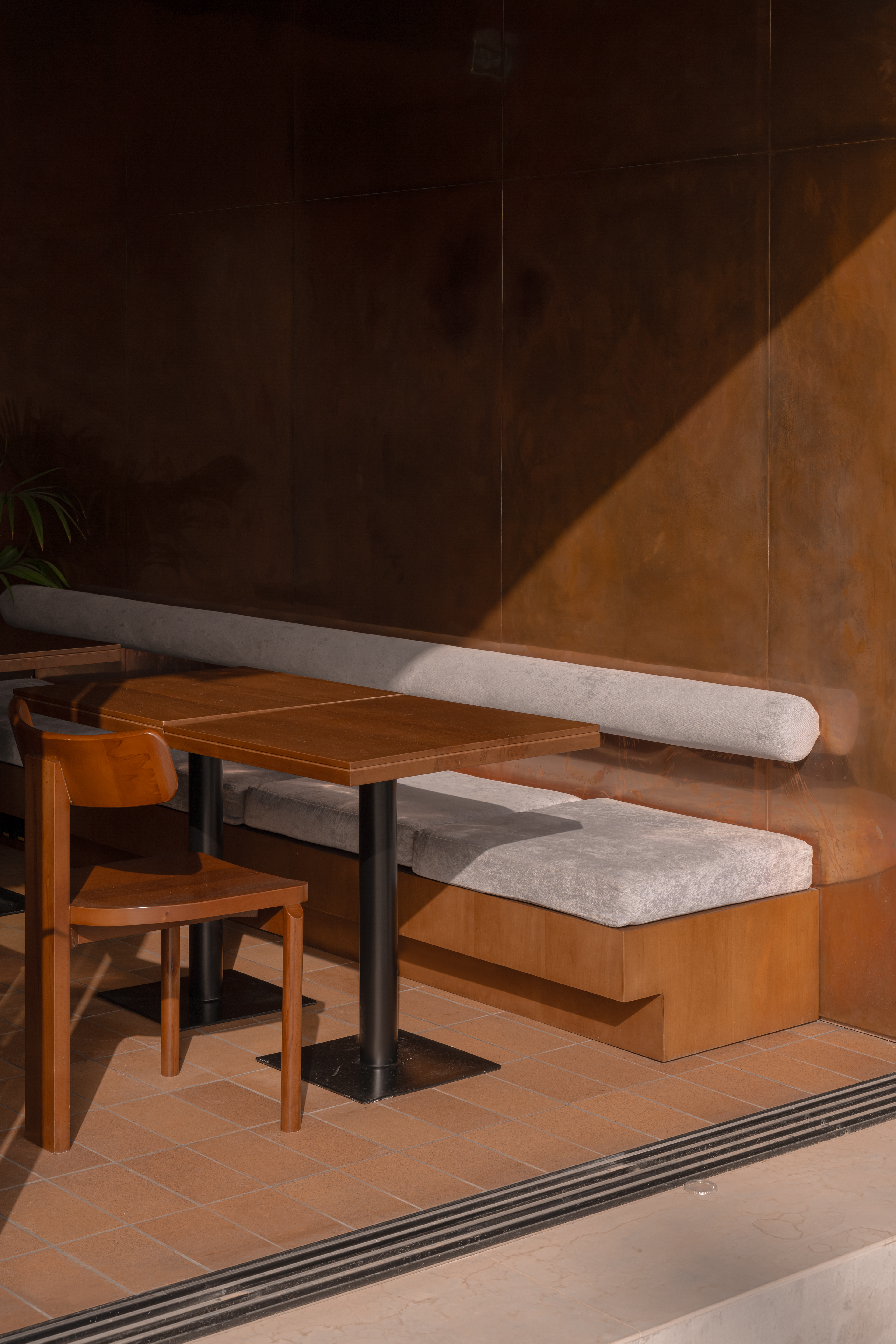 The Riyadh venue continues this narrative with Blu Fiori, referencing the theme of plants. Rather than filling the space with greenery, we took a more nuanced approach—focusing on soil, the nourishing base from which all plant life begins. This concept is reflected in the materials, forms, and overall atmosphere of the interior.
