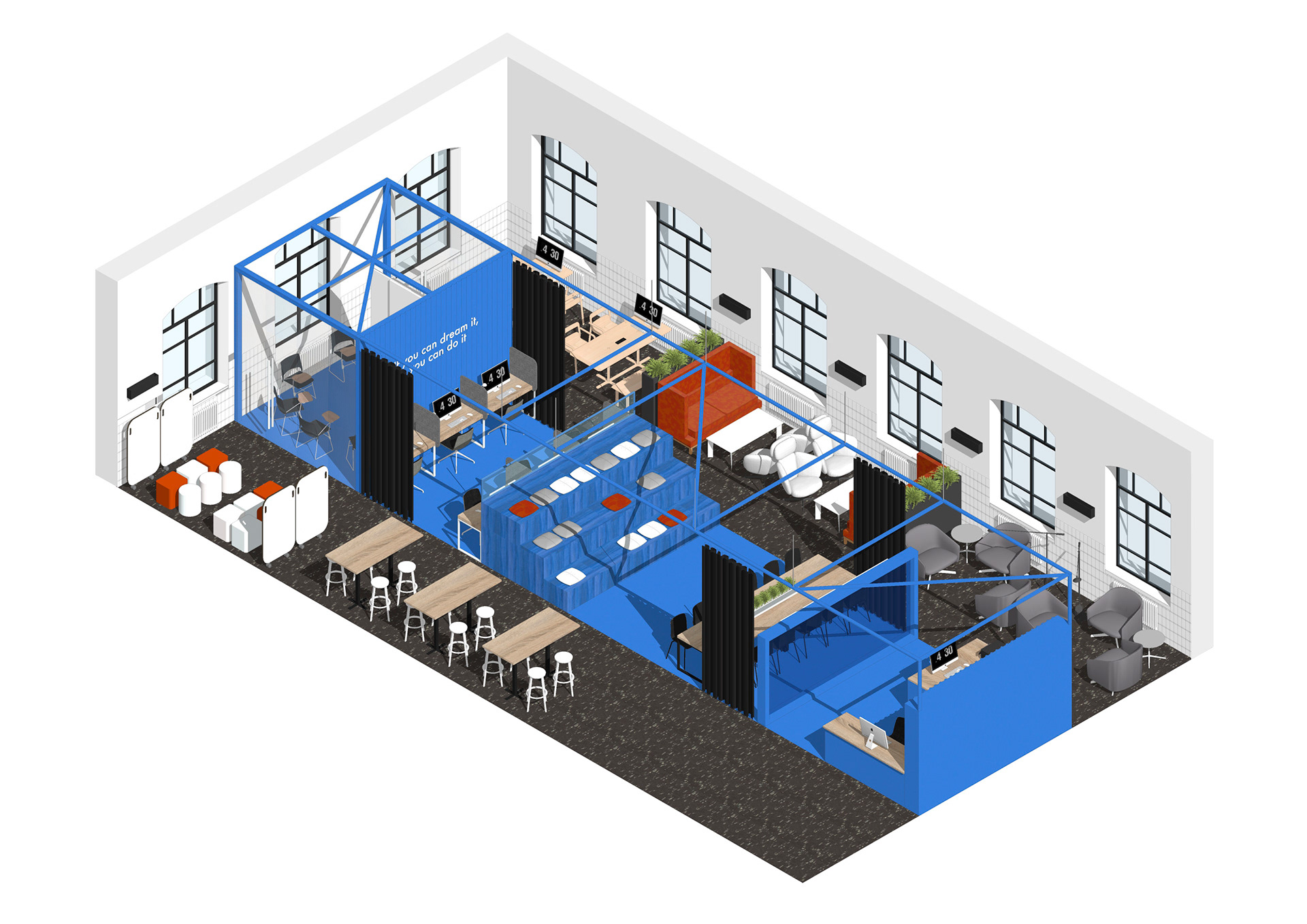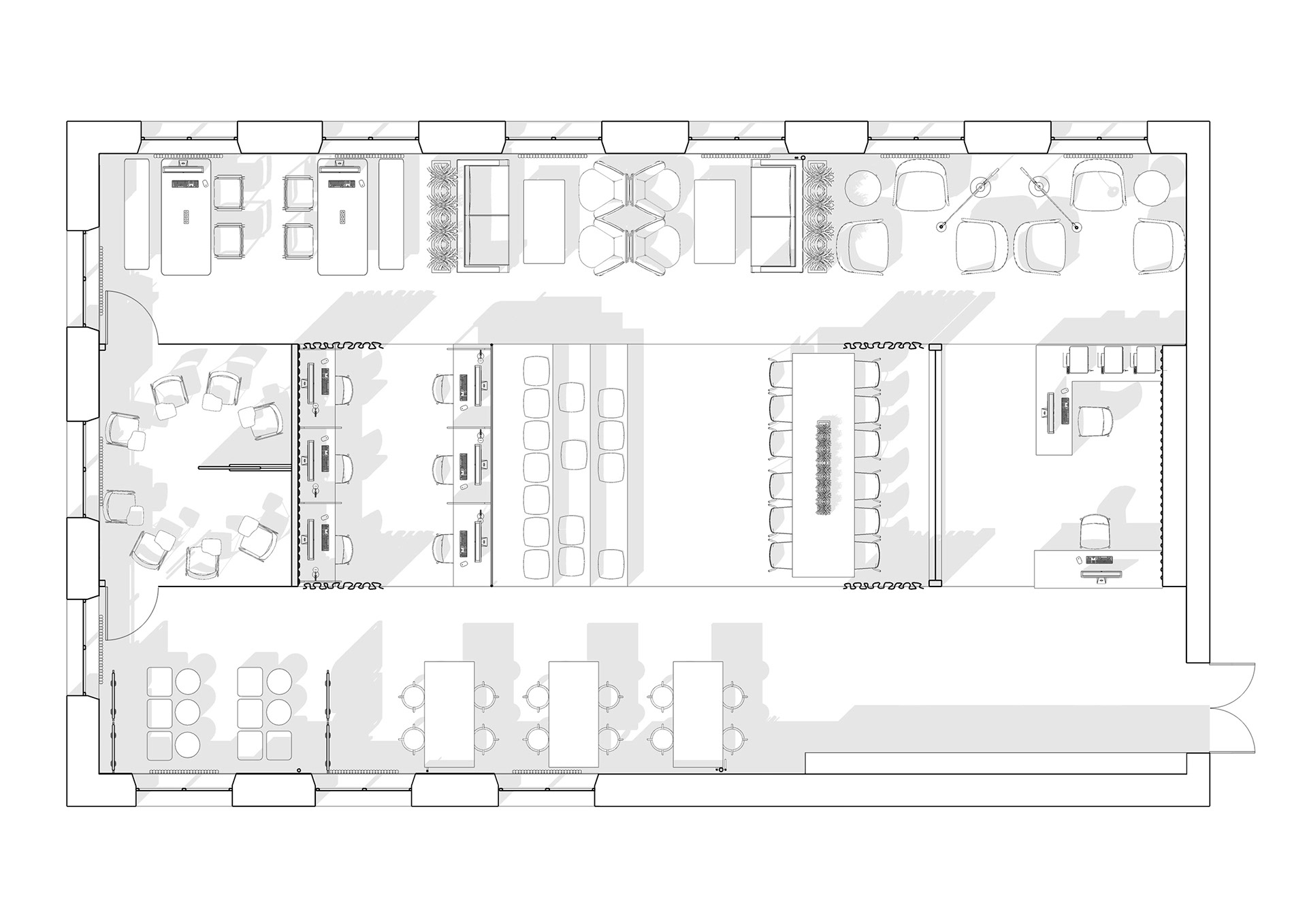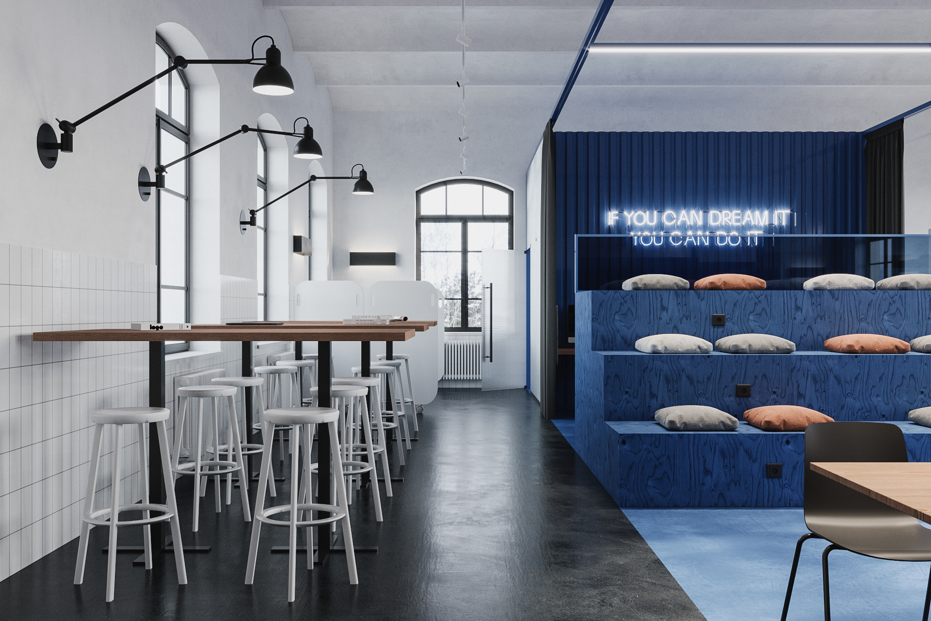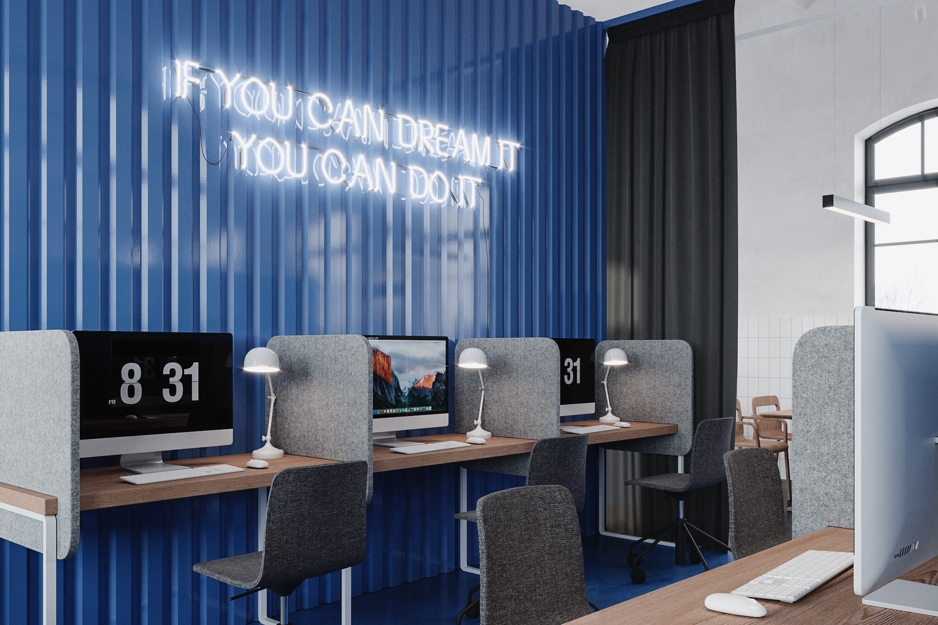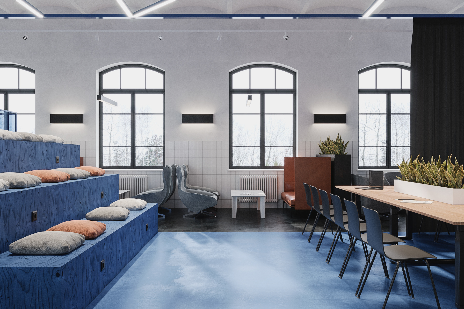 Проект для библиотеки главного корпуса университета ЛЭТИ. Перед нами стояла задачи сделать современное пространство для студентов на базе коворкинга. На площадке предусмотрены места для работы и общения, несколько переговорных, амфитеатр для мероприятий и доступ к единой базе через ПК. В качестве основного акцента мы использовали фирменные цвета университета.