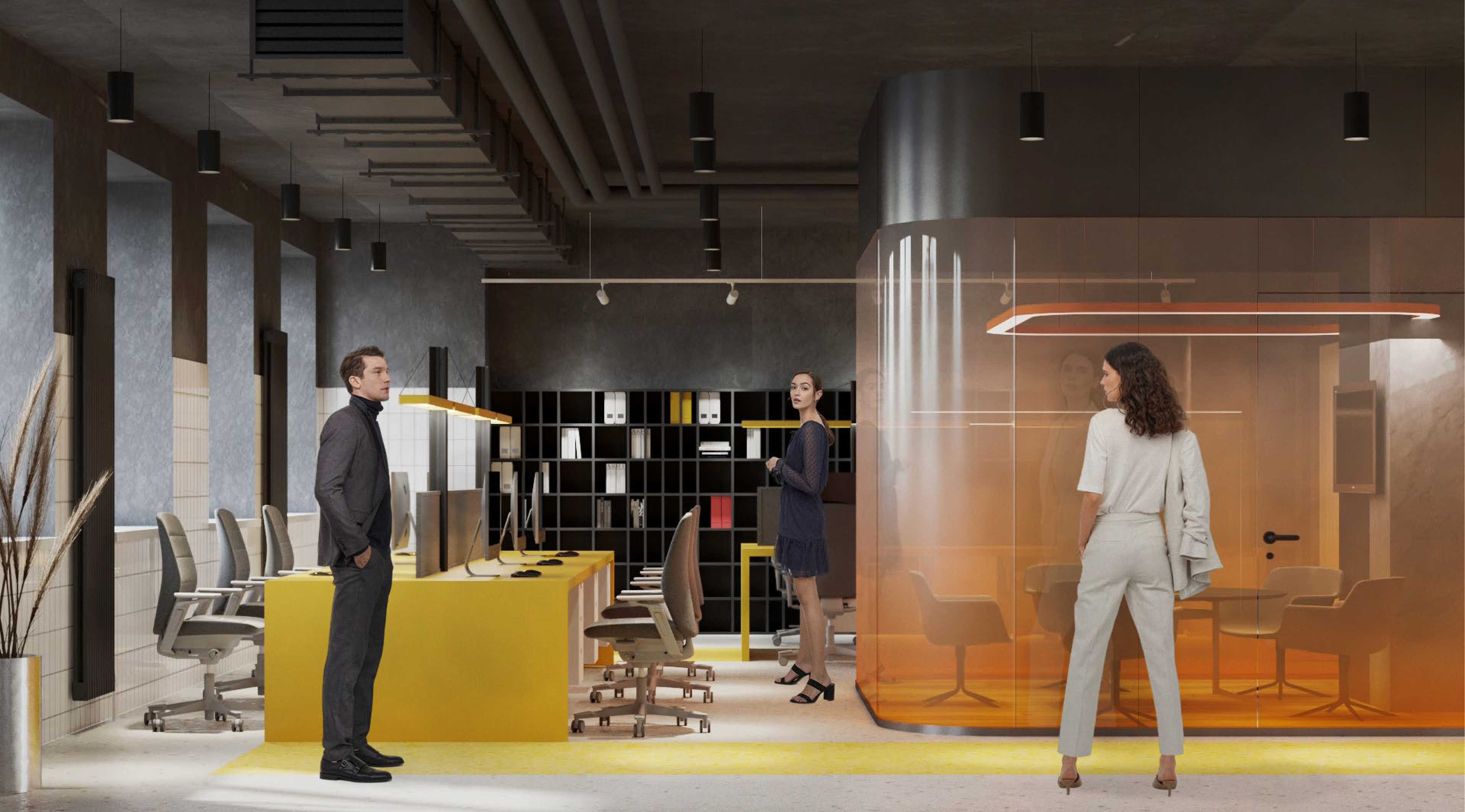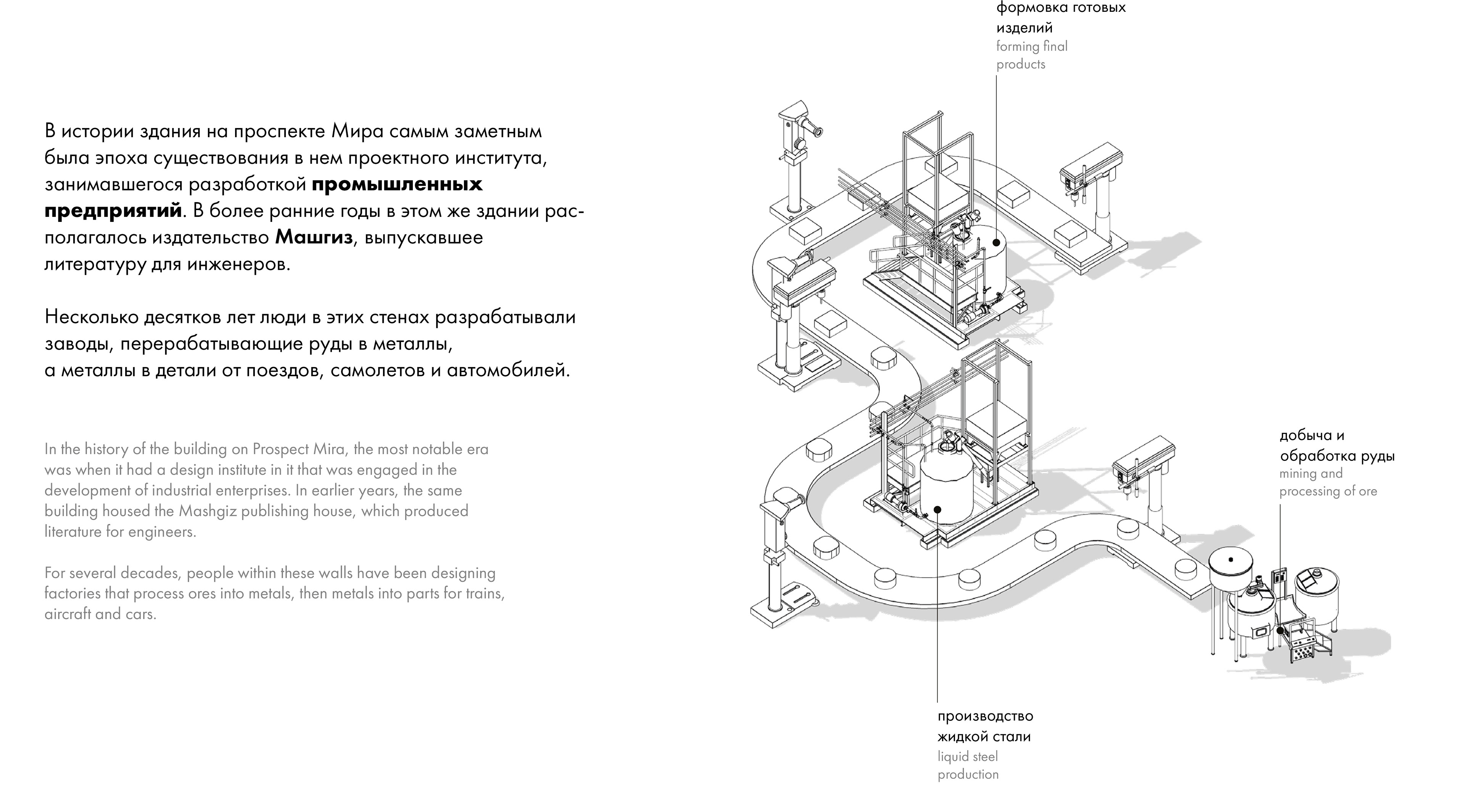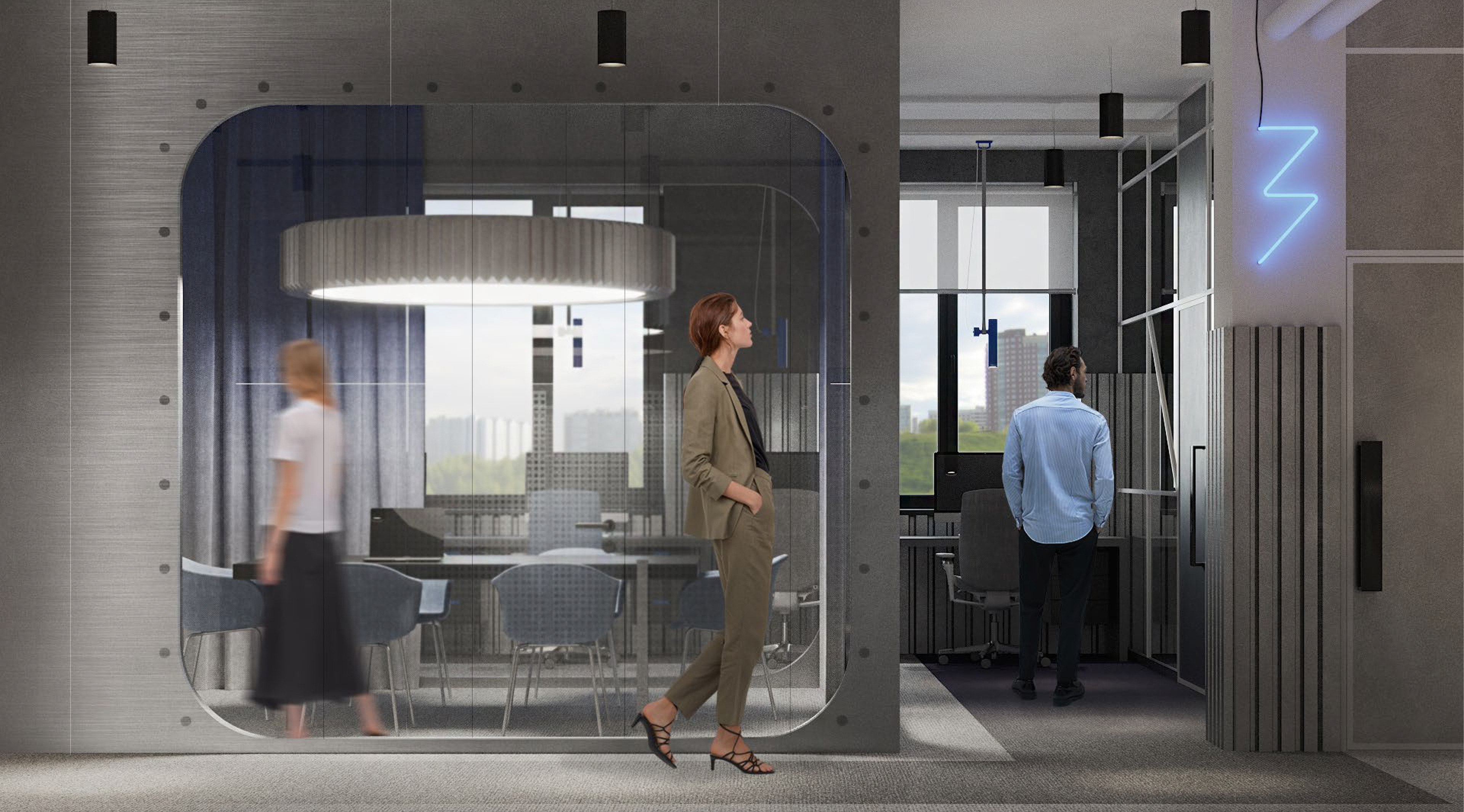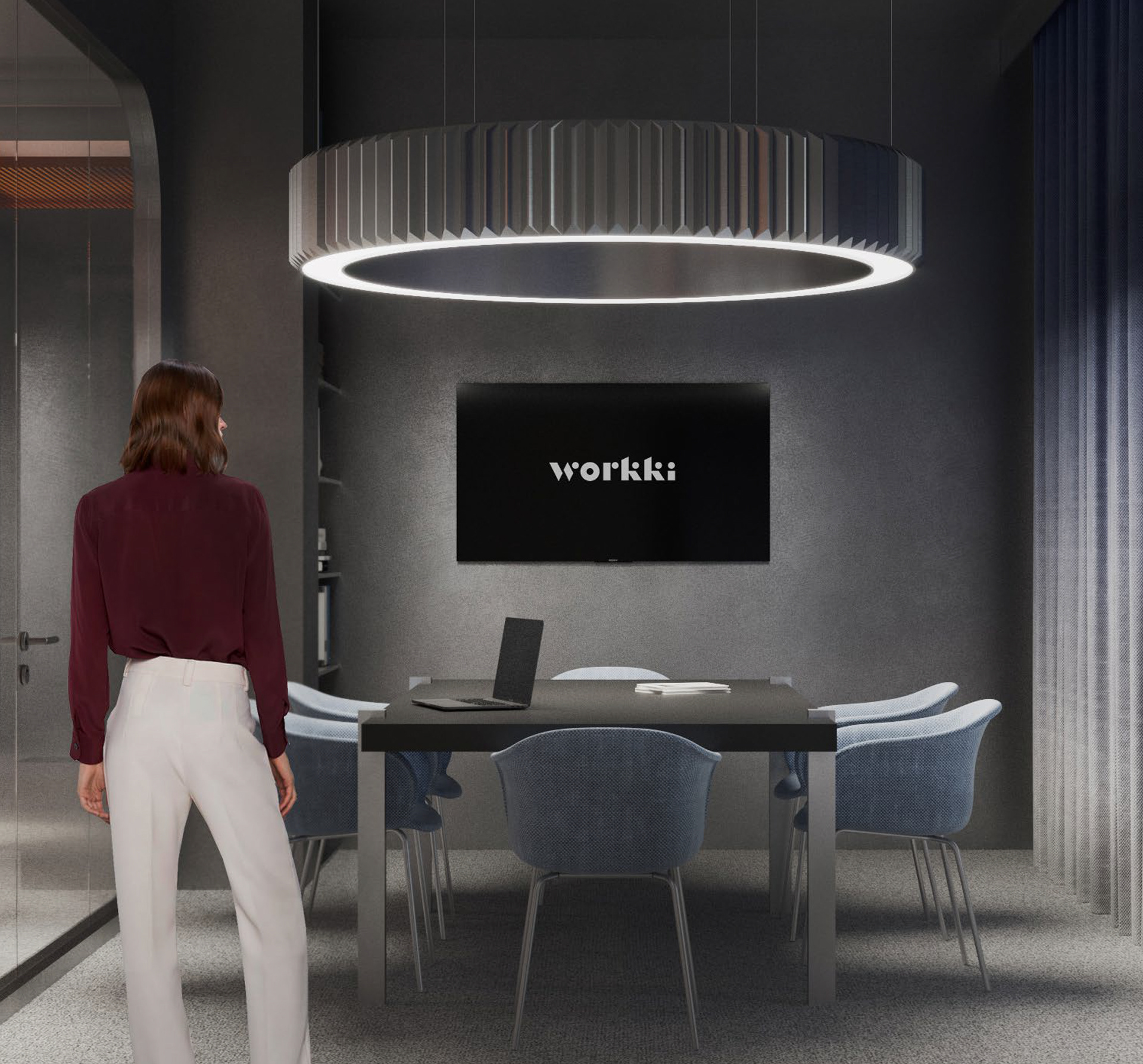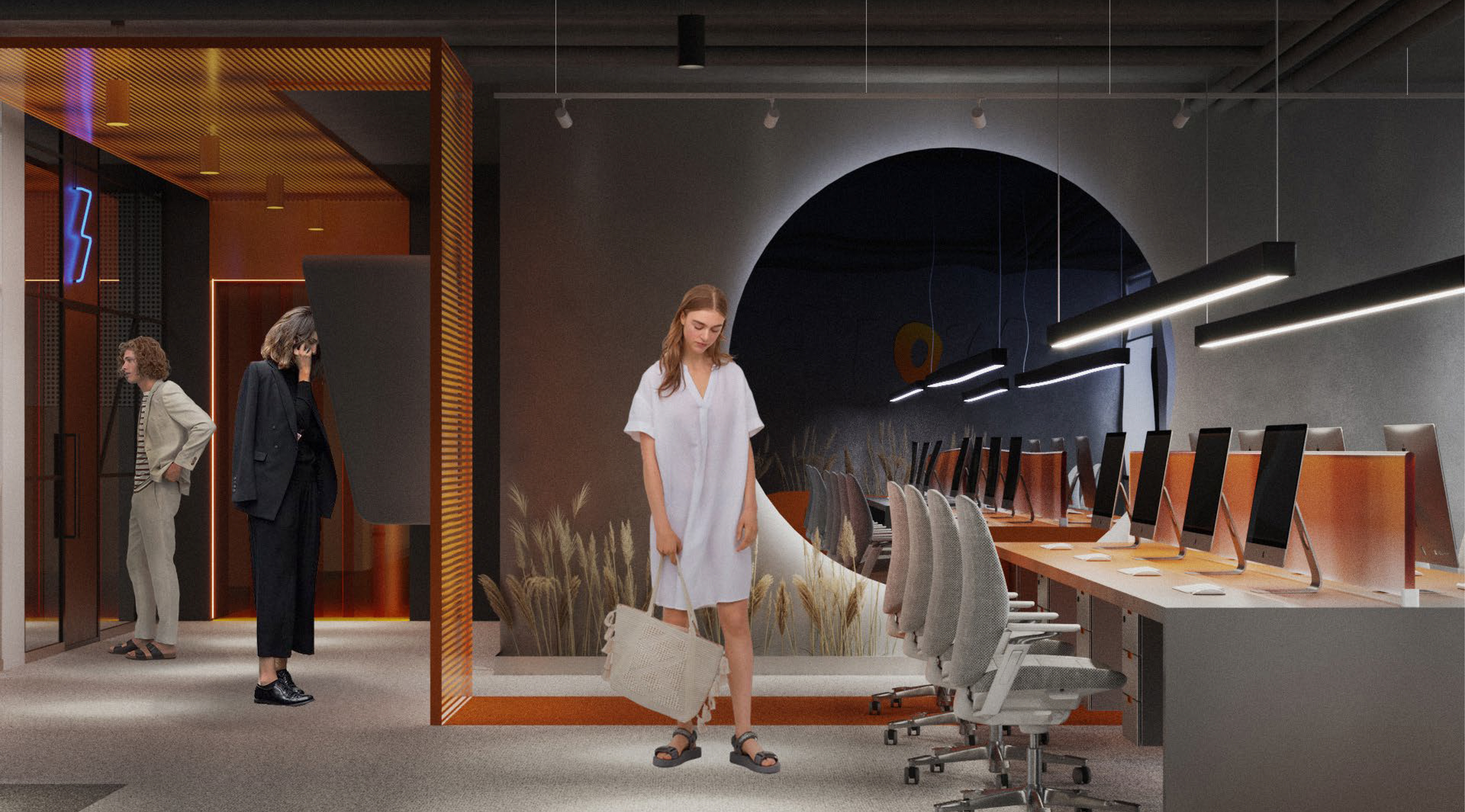 WORKKI's new coworking space is located in a former building of a design institute that developed metal industry enterprises. It was the optimal production process, the magical path from raw material to the finished part of a train or plane, that was the main focus of the Institute. We depicted this process in the interior of the new office space - exploring different zones of the coworking space, through the elements of furniture and decoration, you literally observe how the metal remelted from raw materials gradually cools down and takes shape. Each resident of a coworking space, immersed in his personal workflow, can feel like a part of a large and significant production process, frozen in an endless flow
