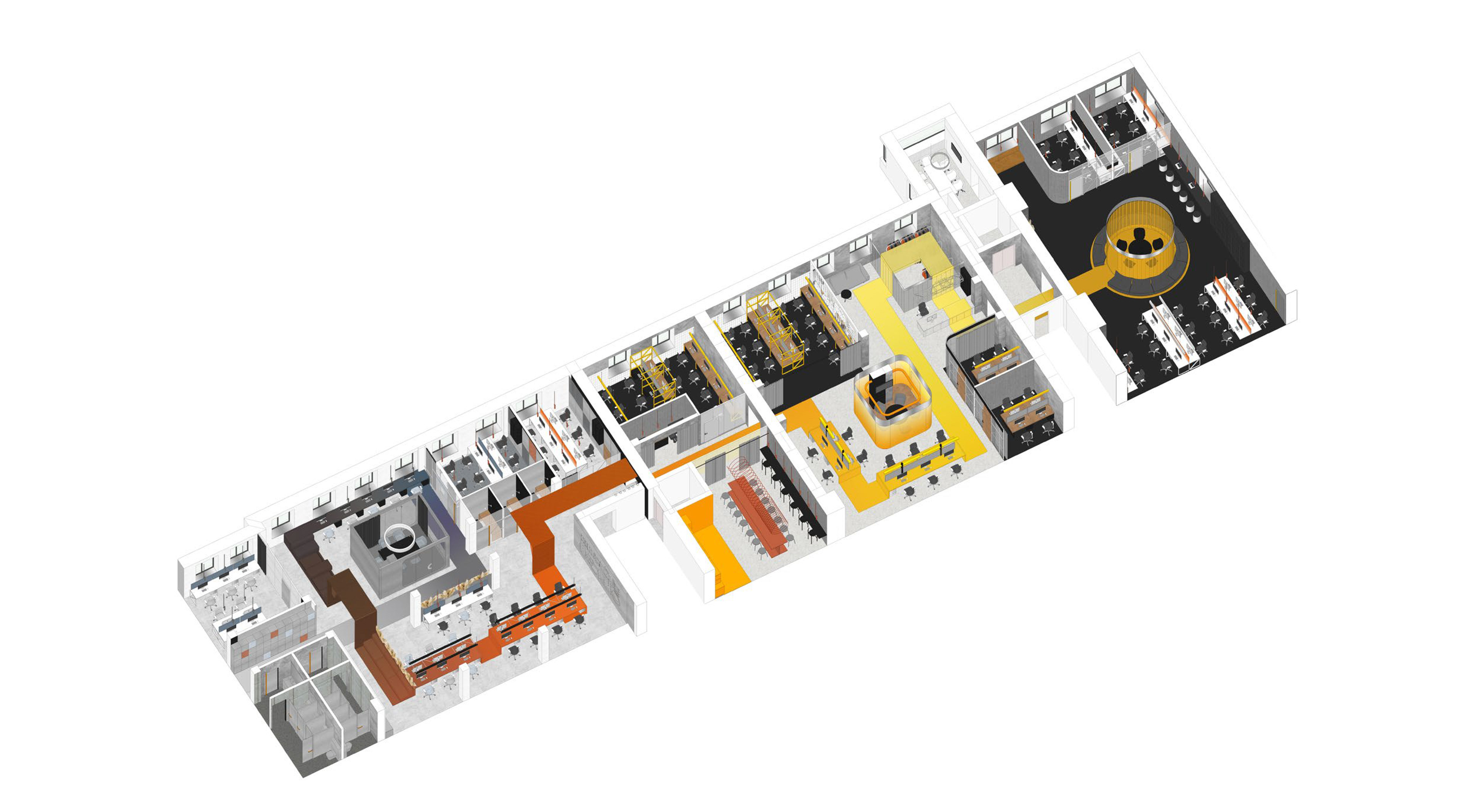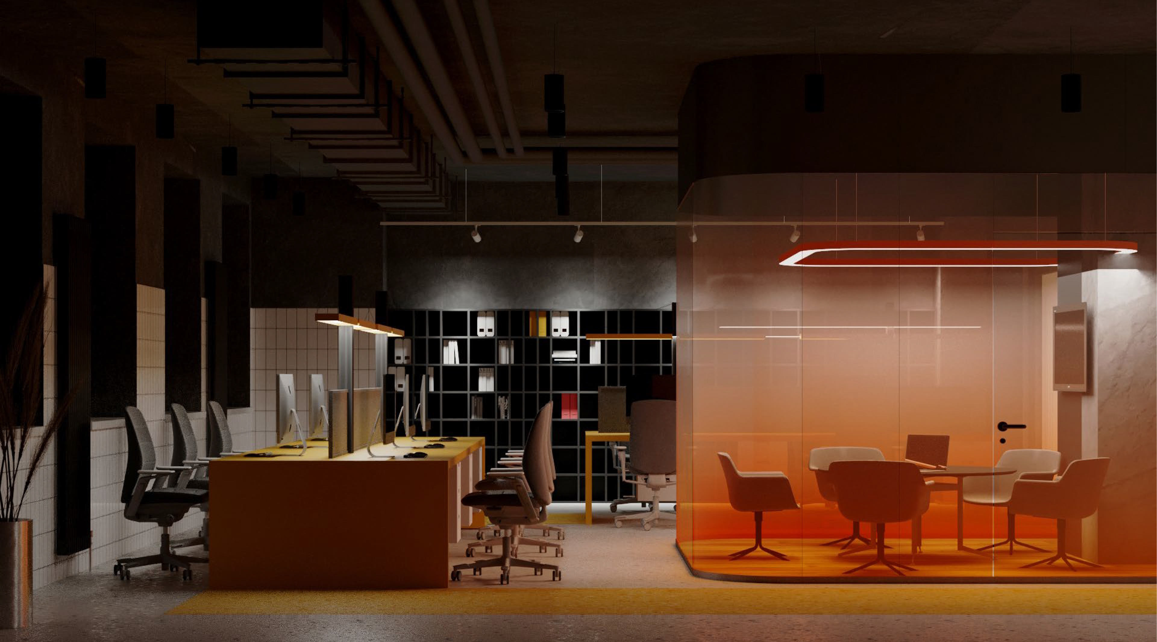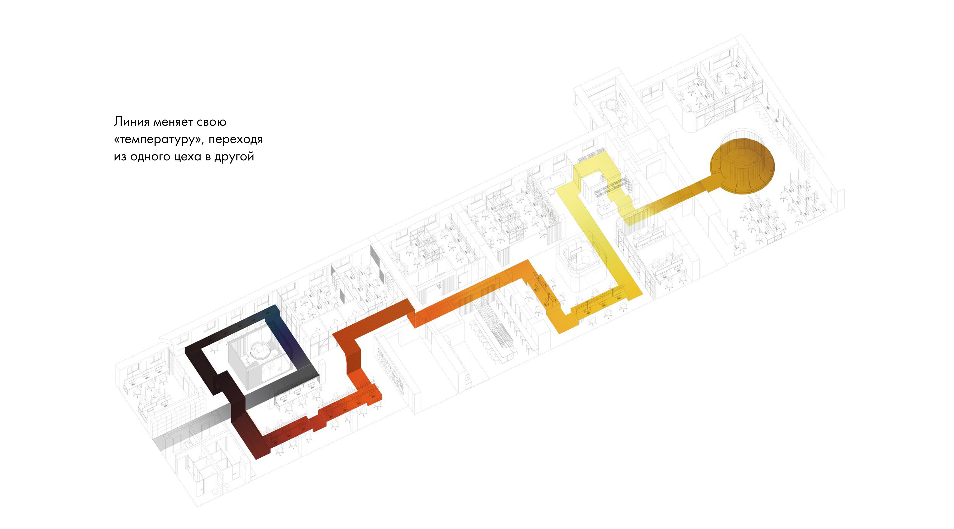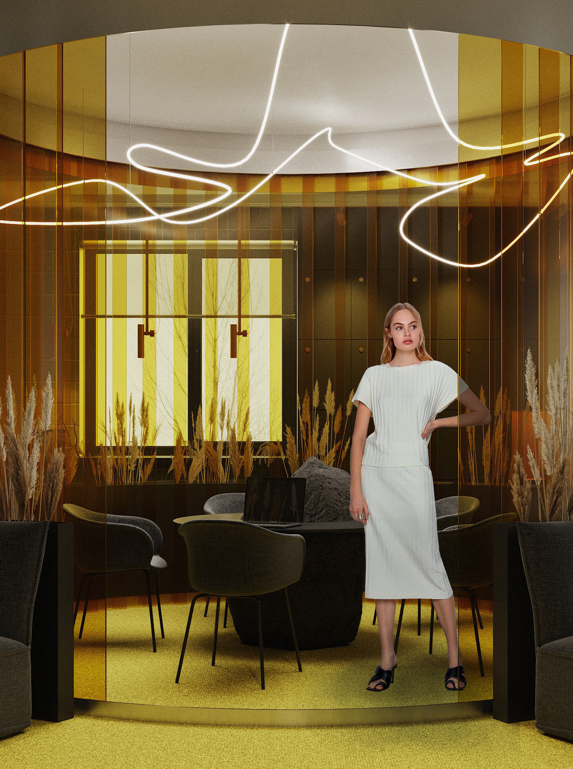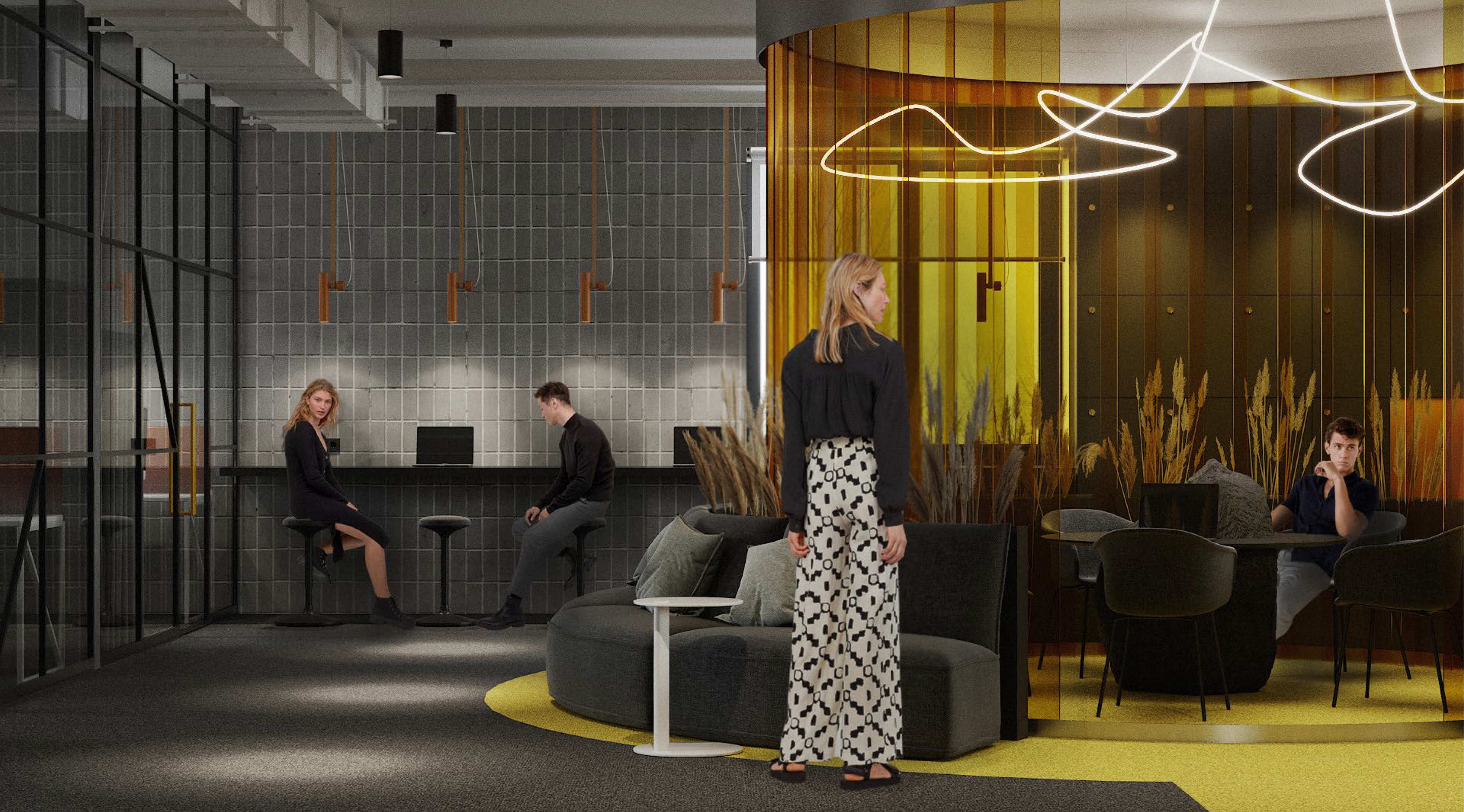 WORKKI's new coworking space is located in a former building of a design institute that developed metal industry enterprises. It was the optimal production process, the magical path from raw material to the finished part of a train or plane, that was the main focus of the Institute. We depicted this process in the interior of the new office space - exploring different zones of the coworking space, through the elements of furniture and decoration, you literally observe how the metal remelted from raw materials gradually cools down and takes shape. Each resident of a coworking space, immersed in his personal workflow, can feel like a part of a large and significant production process, frozen in an endless flow