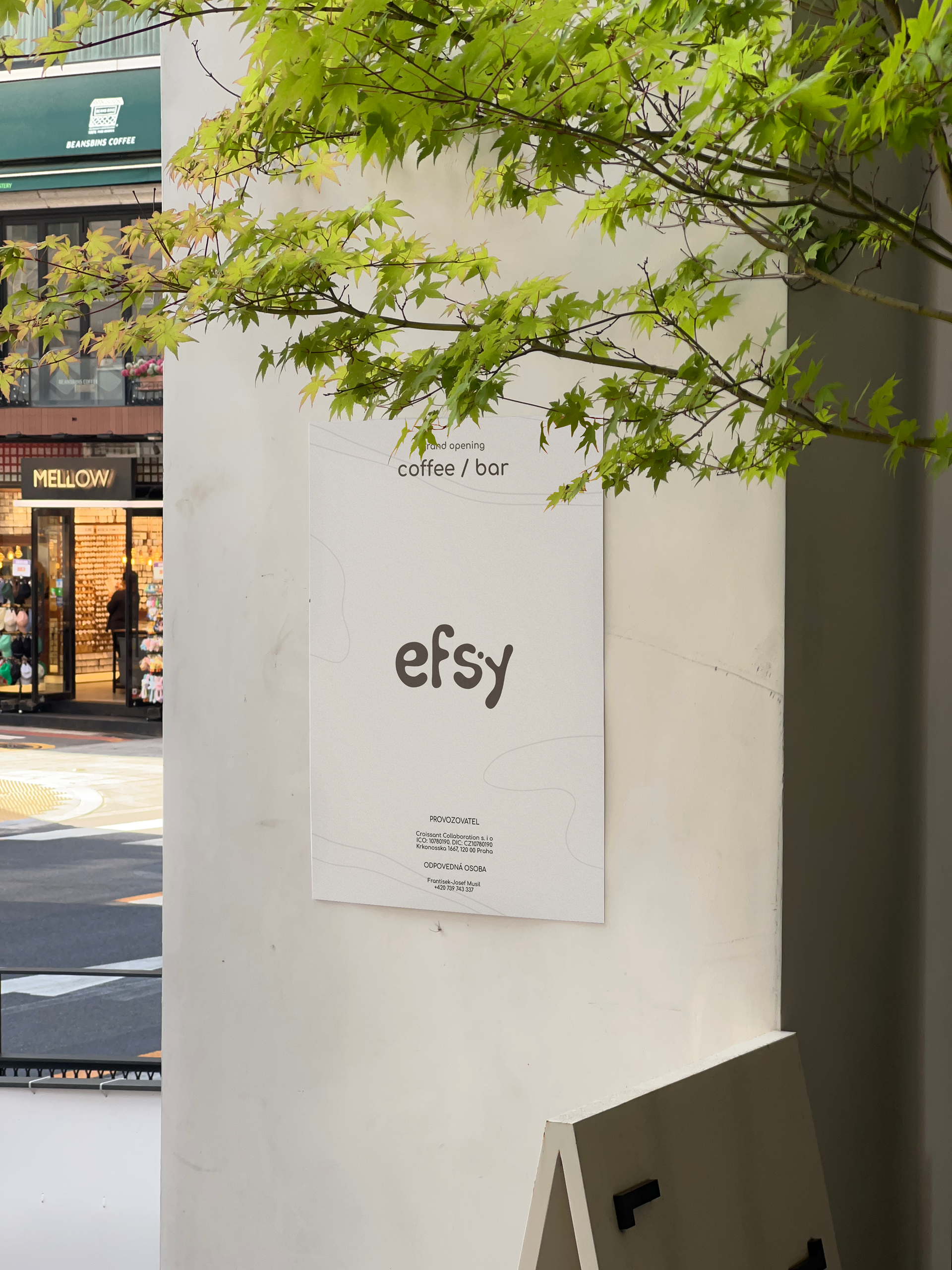 The story began when a client from Prague approached us with a request for interior design, as well as branding and identity design. The name “Efsy” represents a transcription of the abbreviation from the words Flowers & Coffee (FC), reflecting the idea of a close connection between nature and coffee culture.