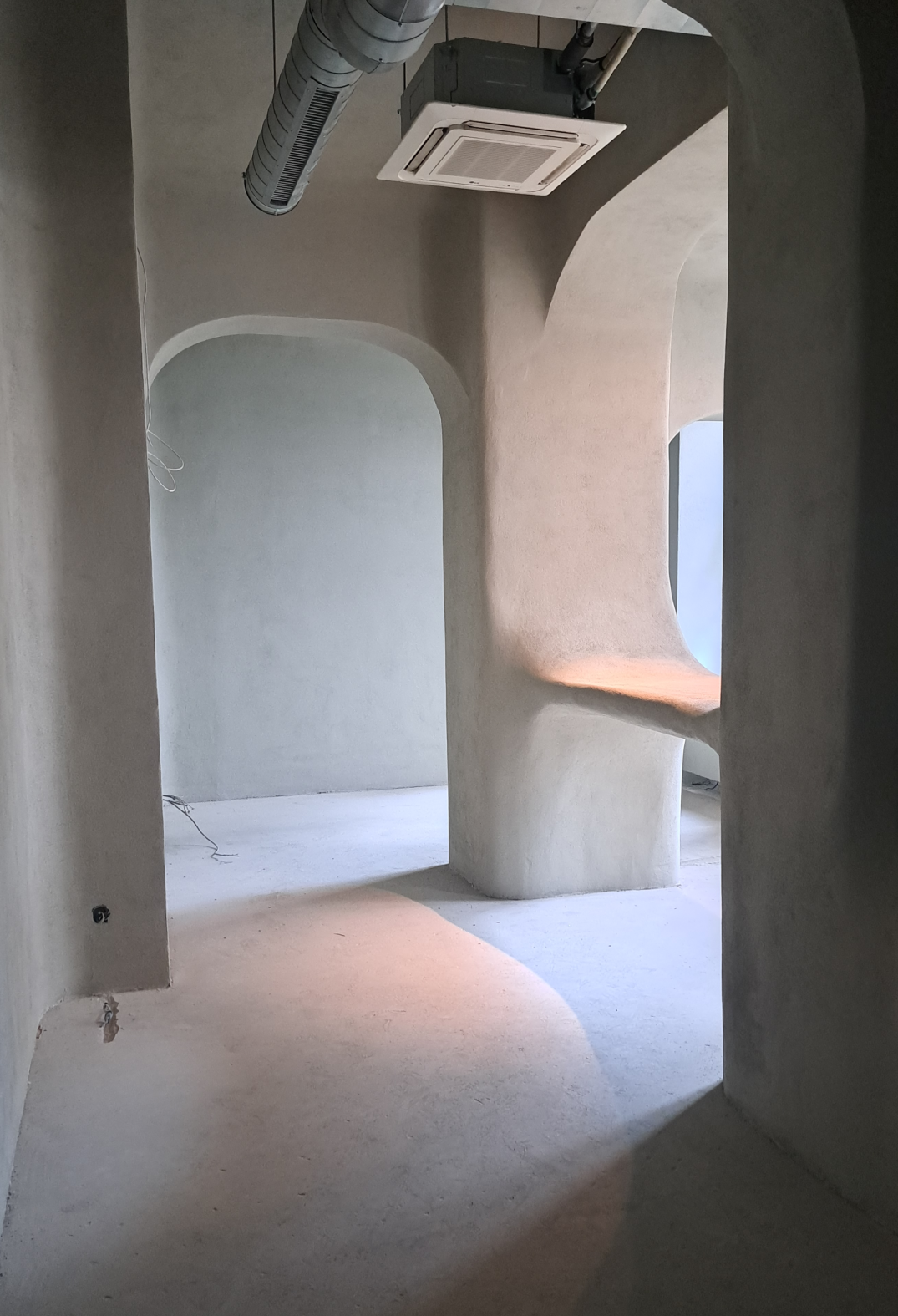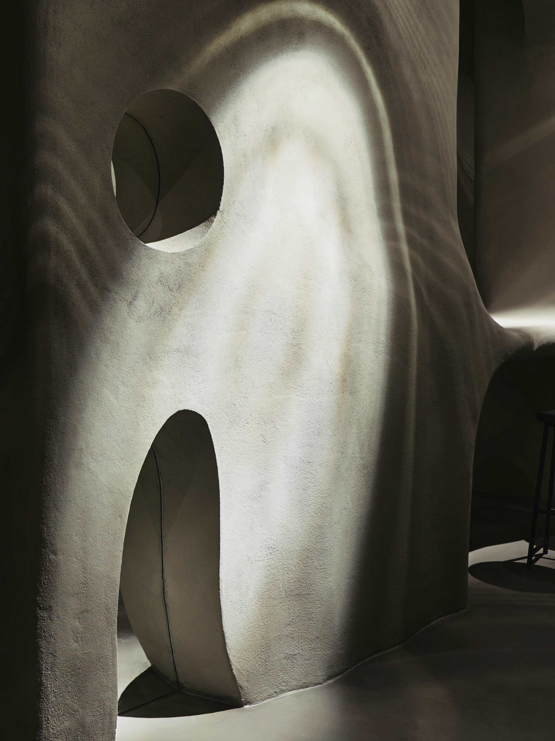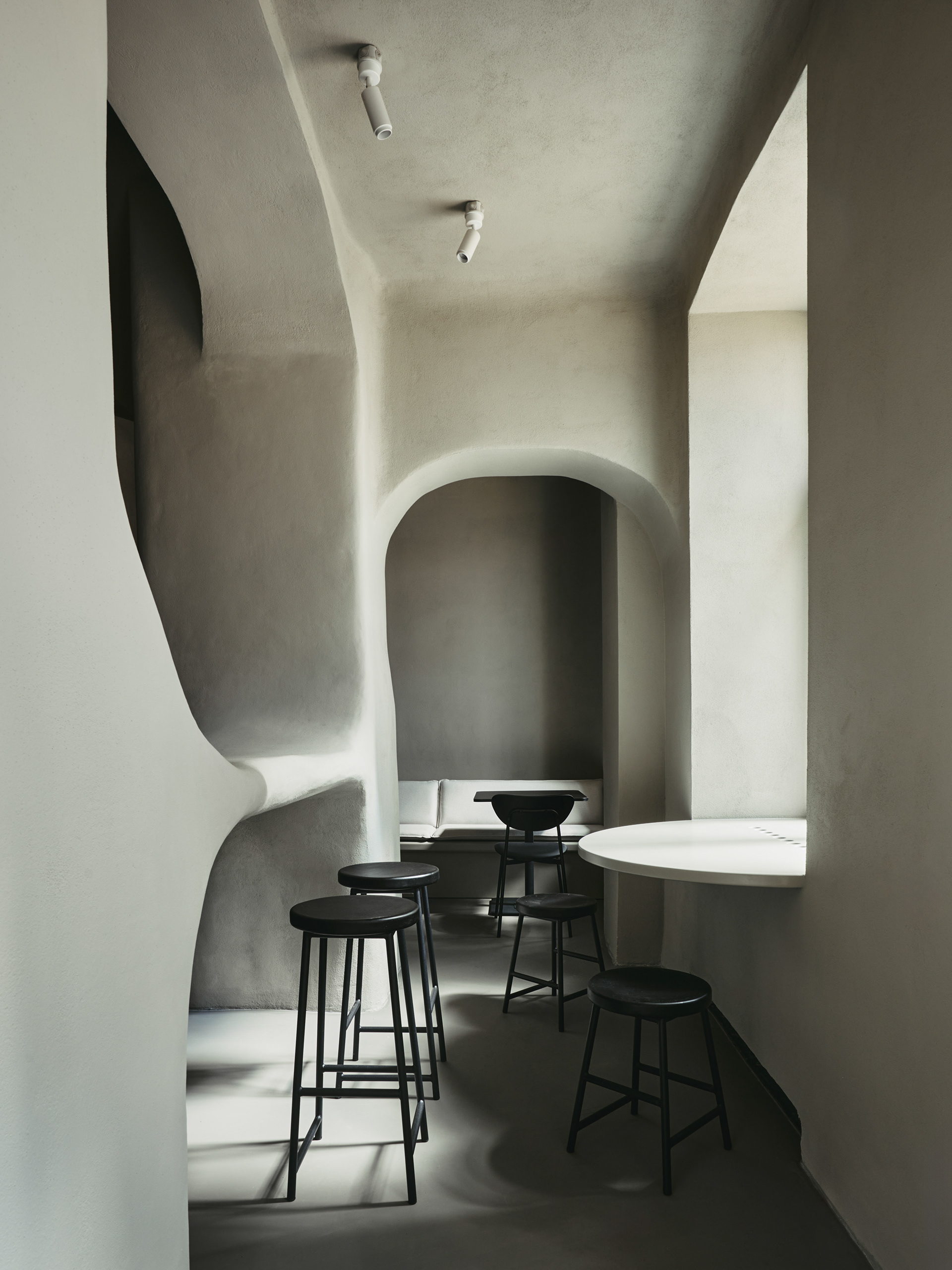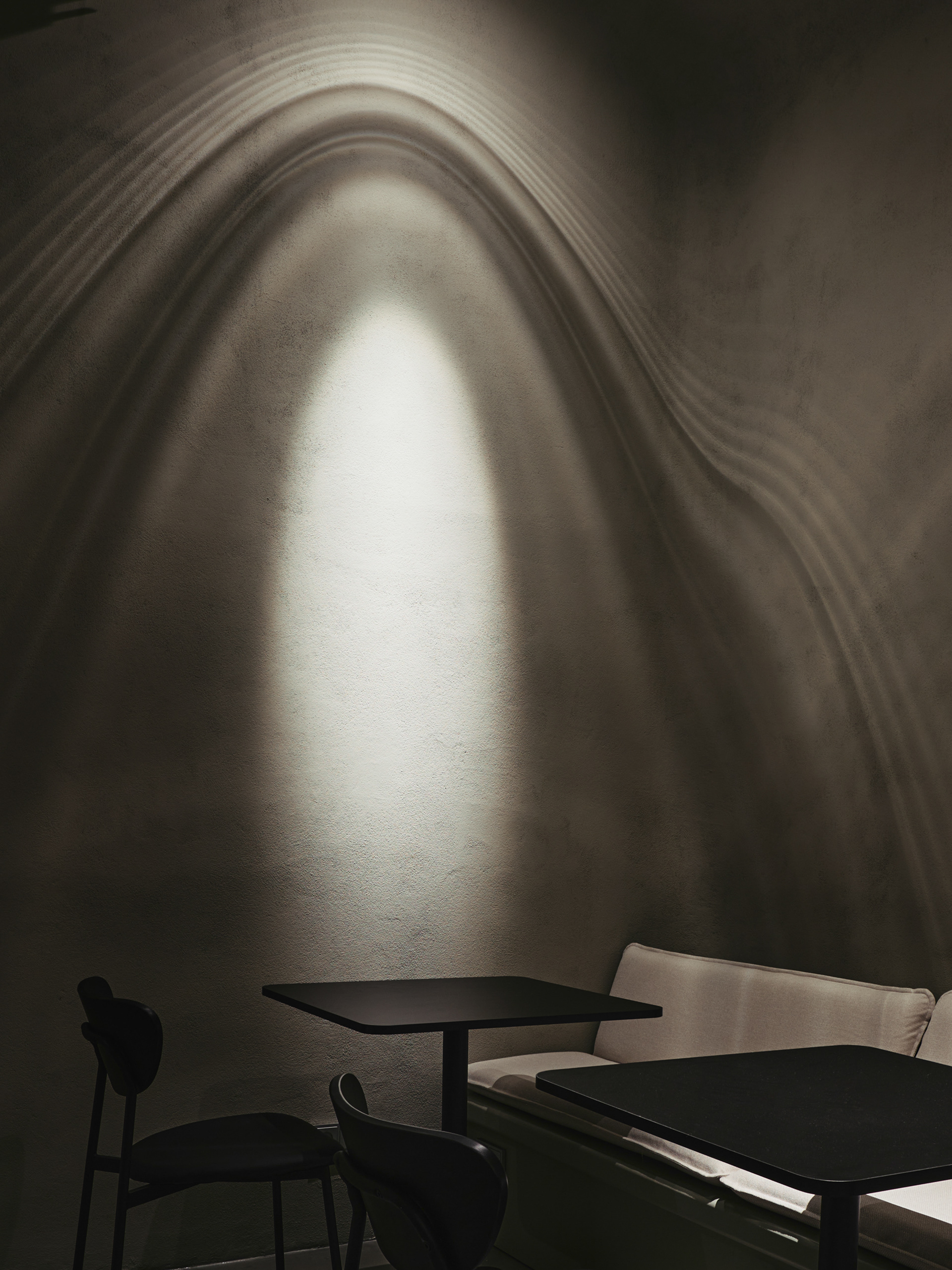 The café is envisioned as a garden with organic and natural pathways leading to secluded spots, creating an atmosphere of tranquility and privacy. The space was divided into several zones to create diverse moods. The main hall symbolizes an urban garden with long lines, such as the 8-meter-long sofa area and the welcoming bar station. The secondary hall, a bar area, offers a more intimate ambiance with muted colors and special lighting, creating a sense of unity and natural monolithicity.