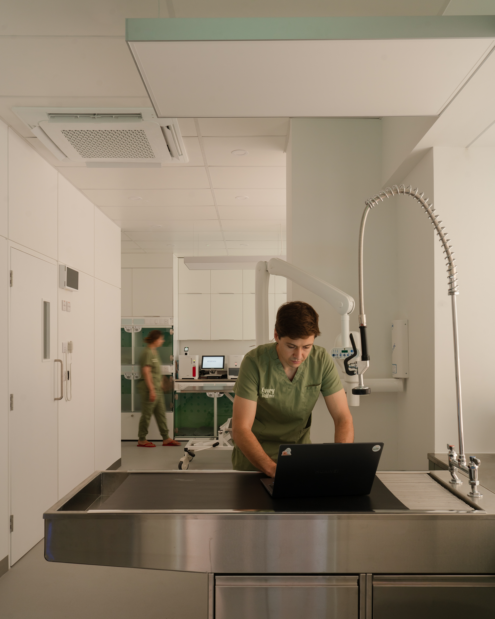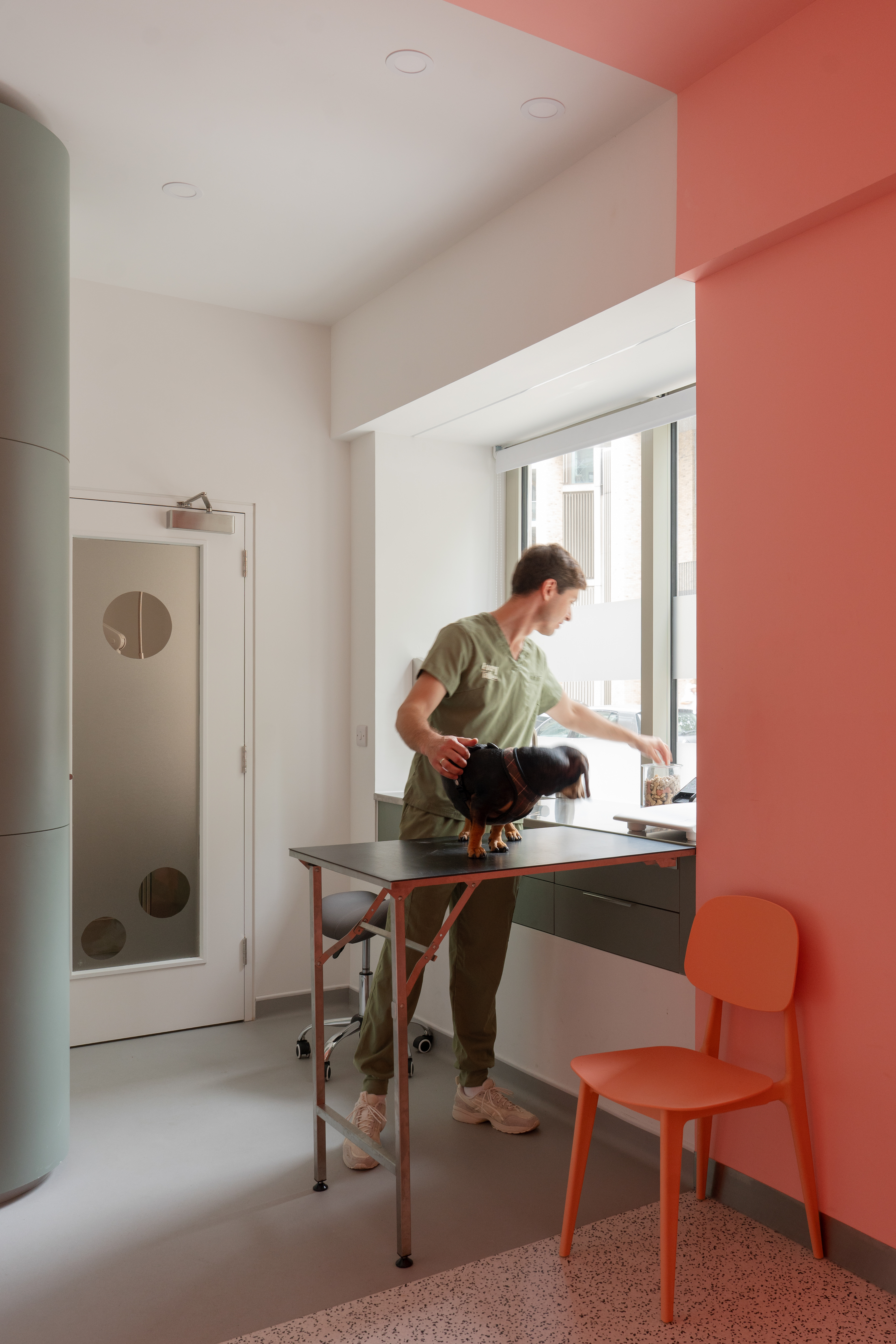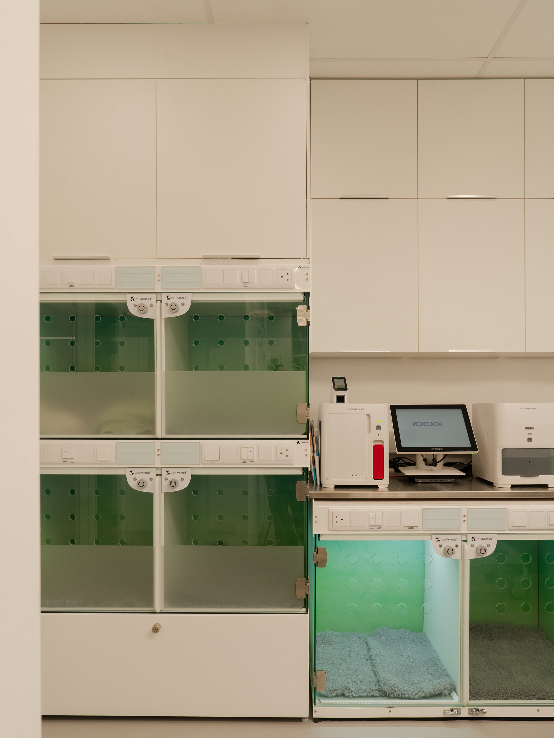 We were tasked with merging care for animals and the professional precision of a medical facility, maintaining a balance between warmth and functionality.