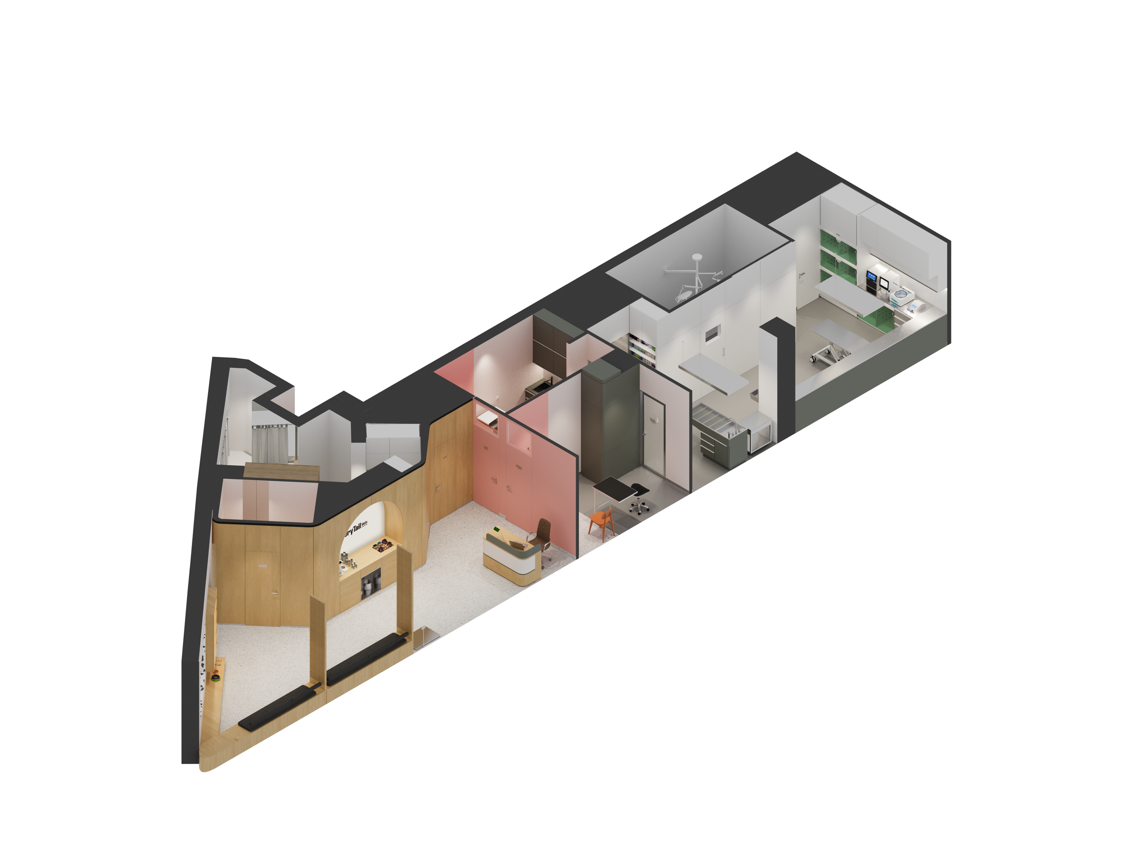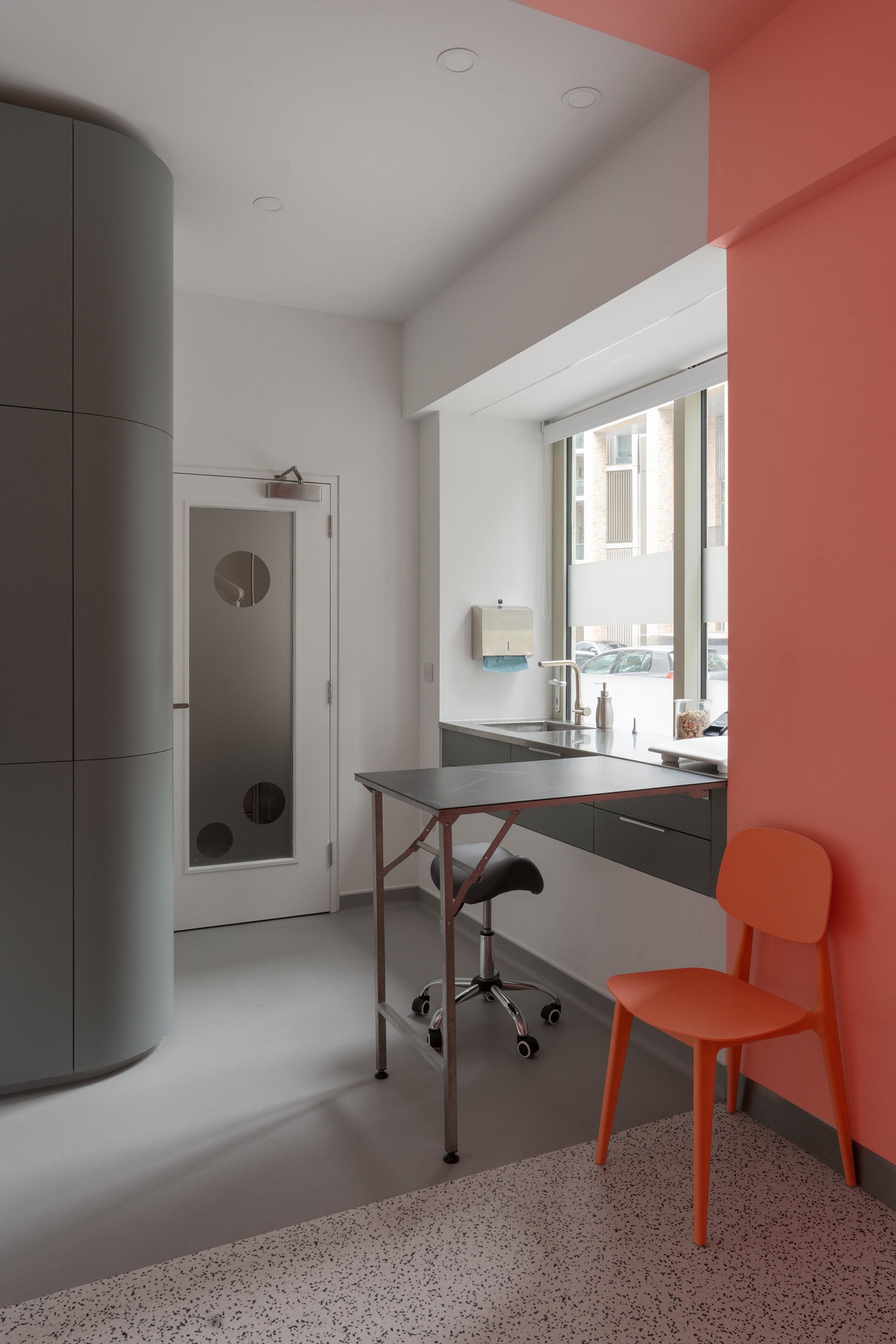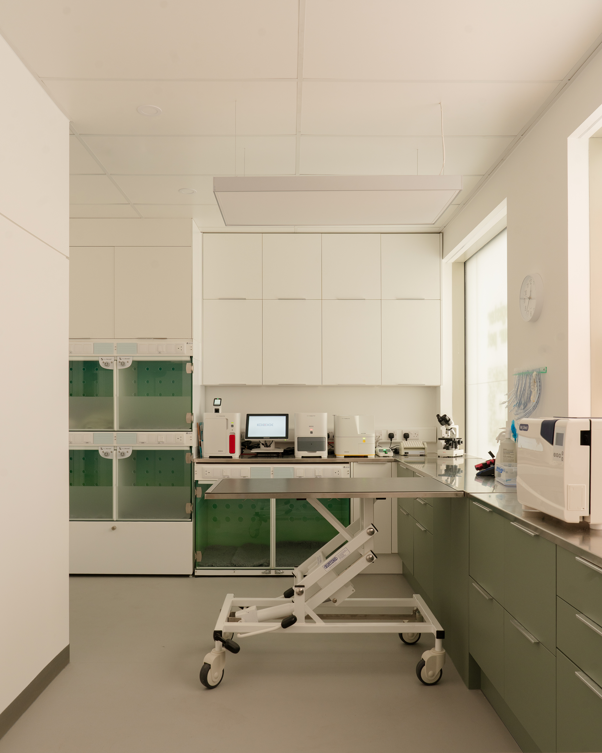 We were tasked with merging care for animals and the professional precision of a medical facility, maintaining a balance between warmth and functionality.