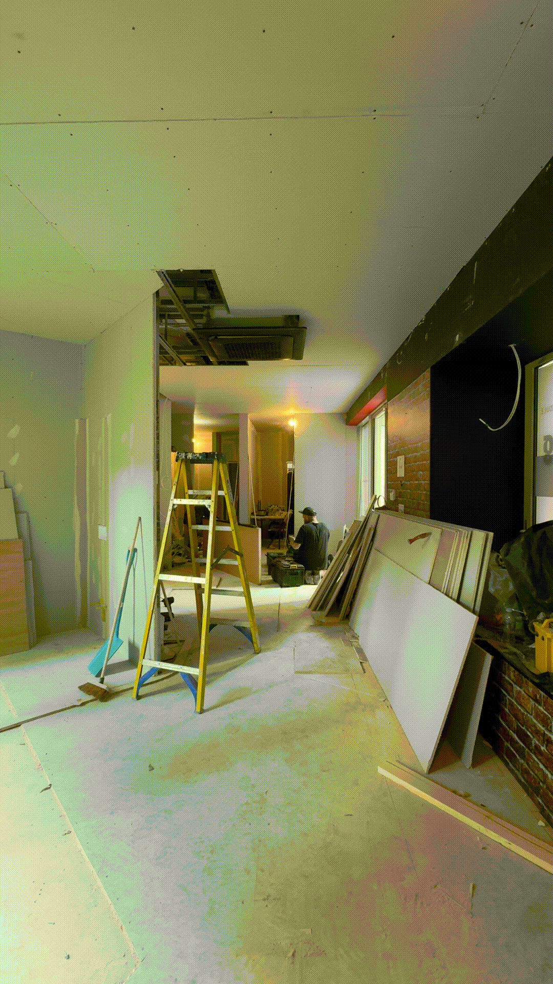 The procedure area features a suspended acoustic ceiling, while the rest of the rooms have plasterboard ceilings.