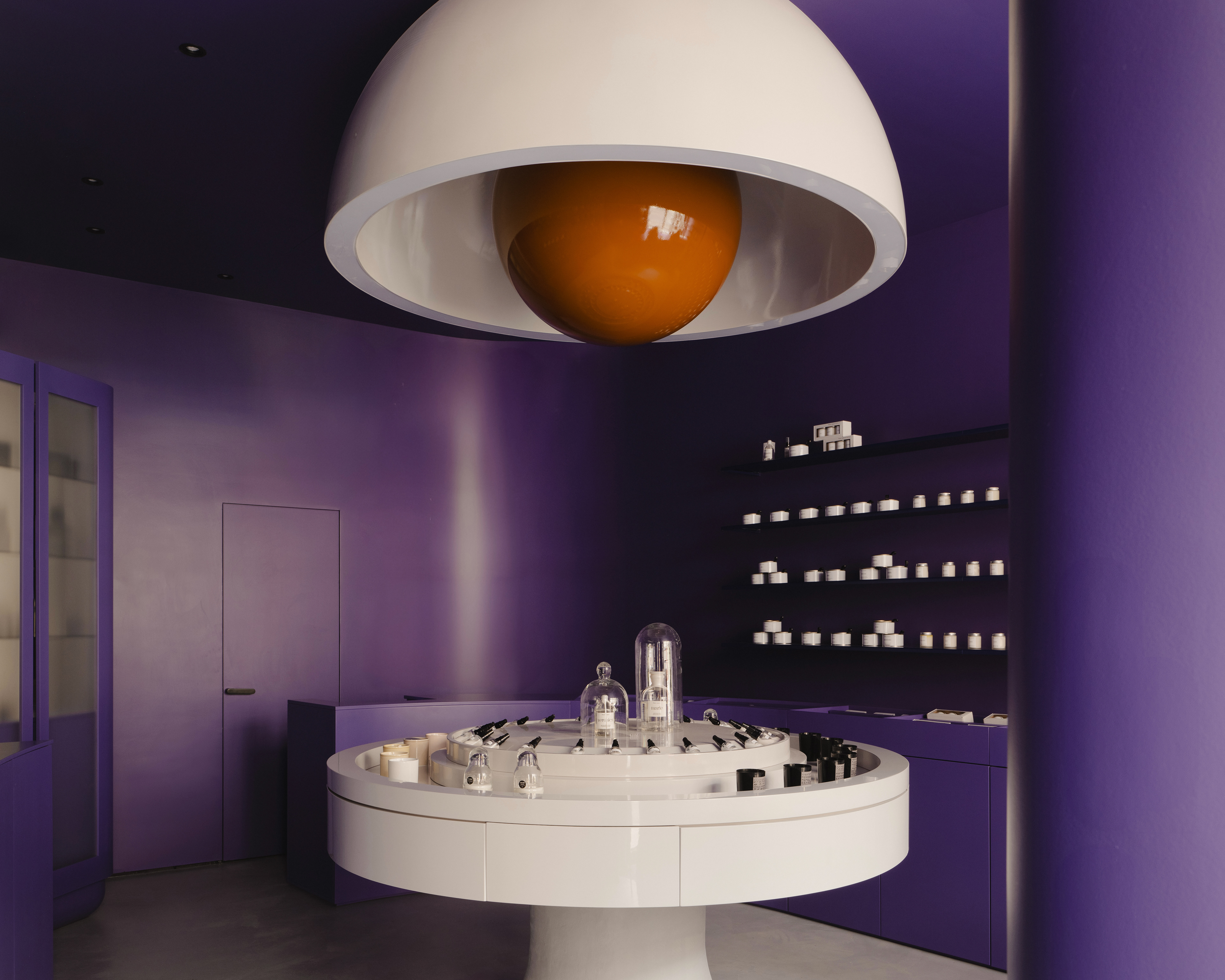 The aim was to design an environment that would serve as a natural extension of the brand and assist guests in their process of discovering scents. The interior is an intimate, cozy space defined by enveloping, rounded shapes. Bold furniture elements guide the flow of movement, creating a sense of continuity and encouraging visitors to explore the space at a leisurely pace.