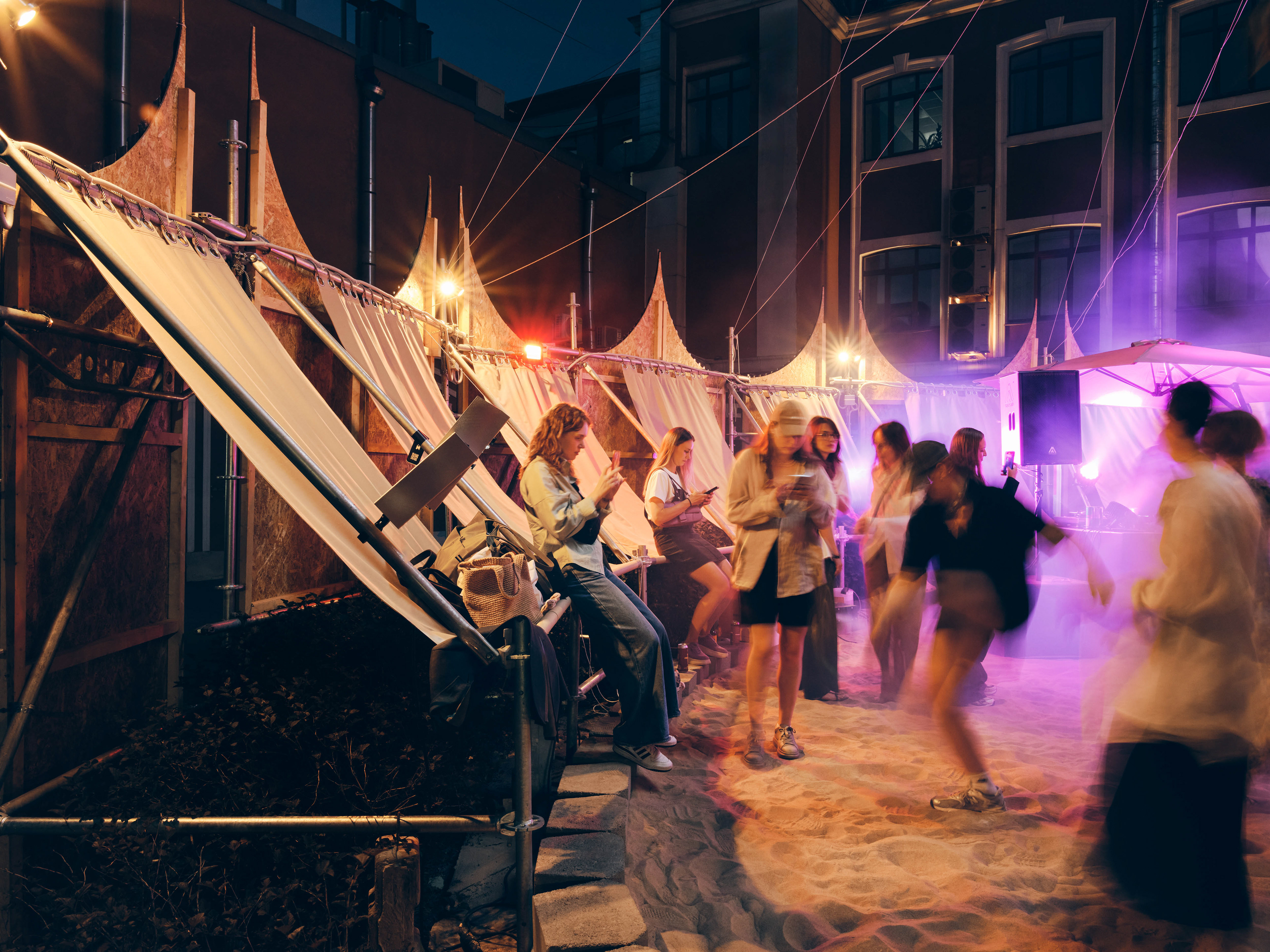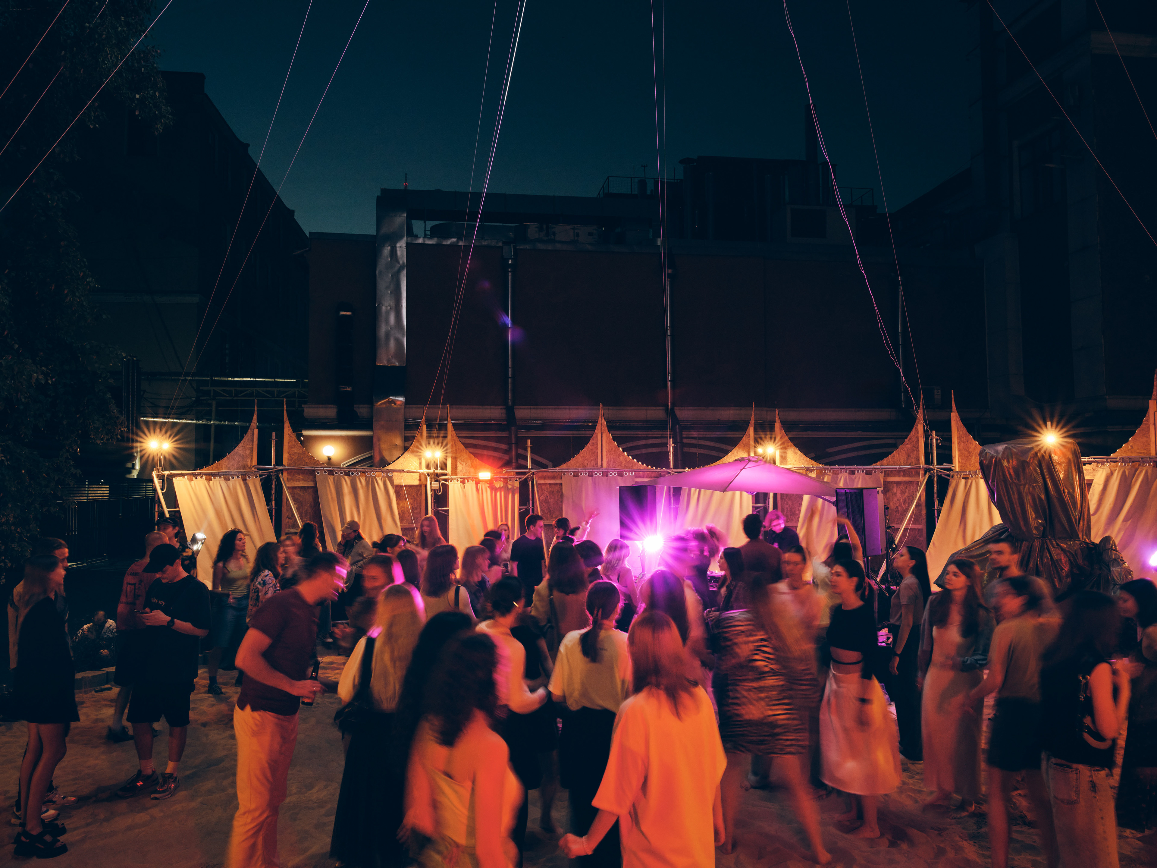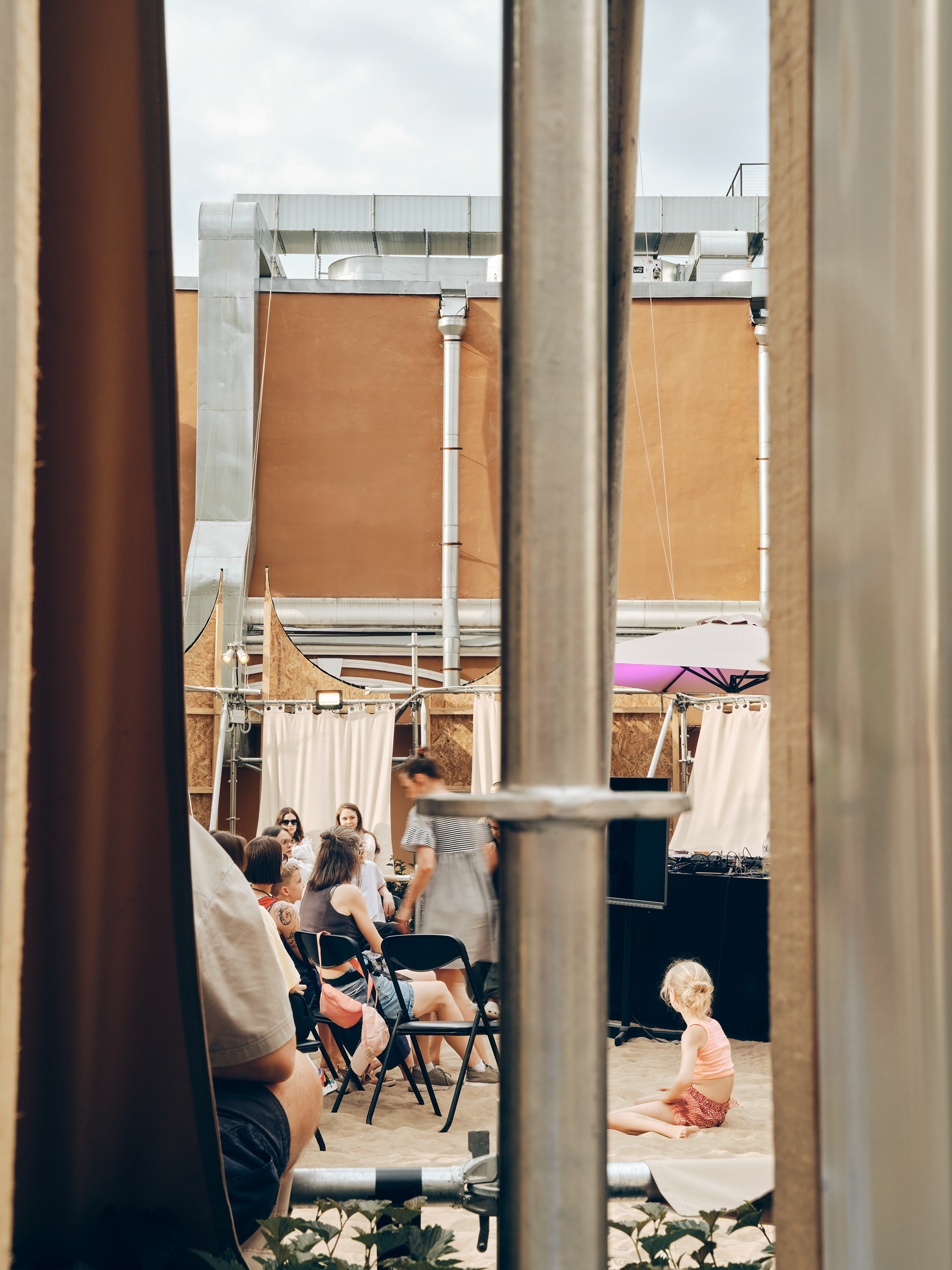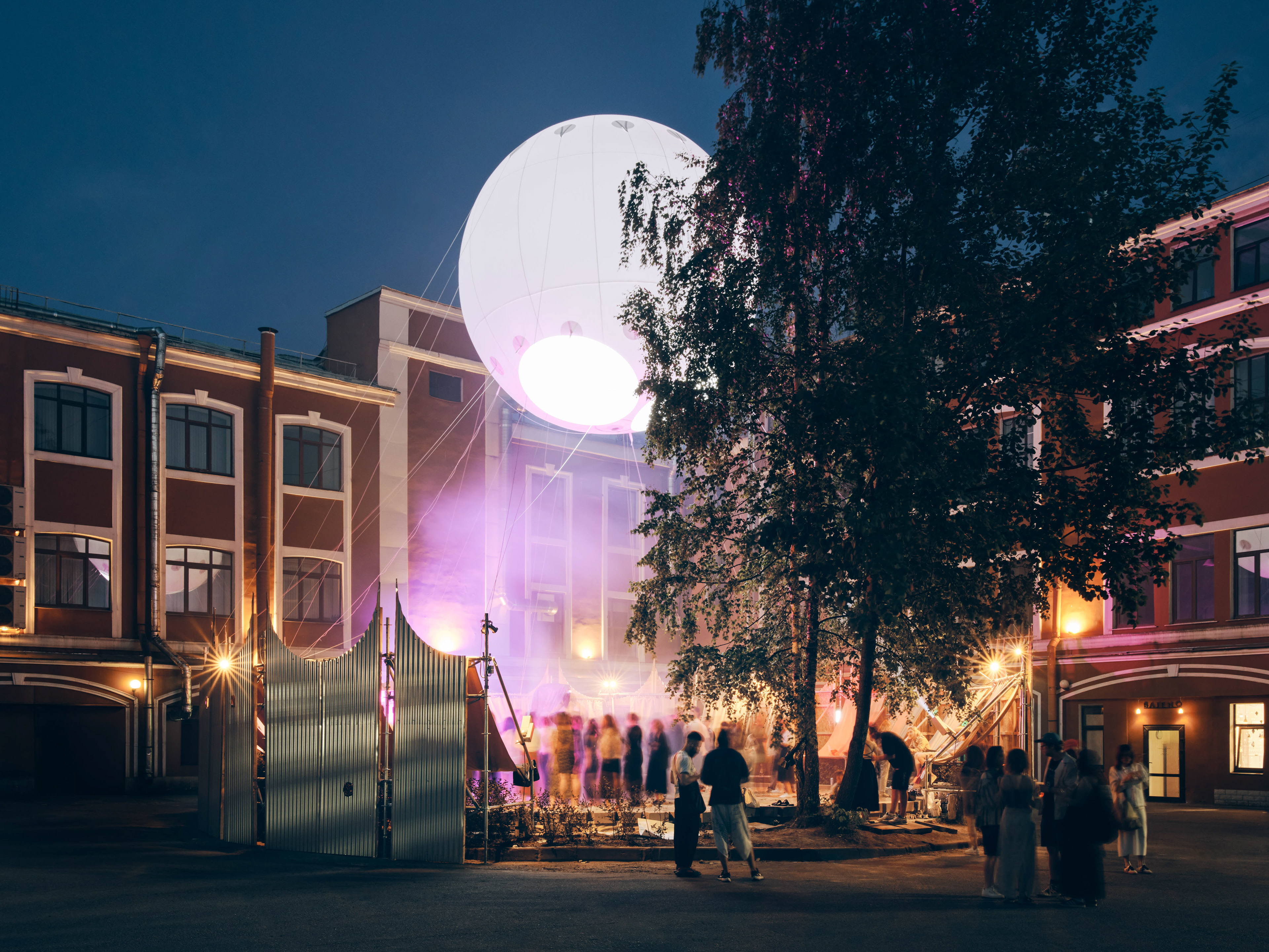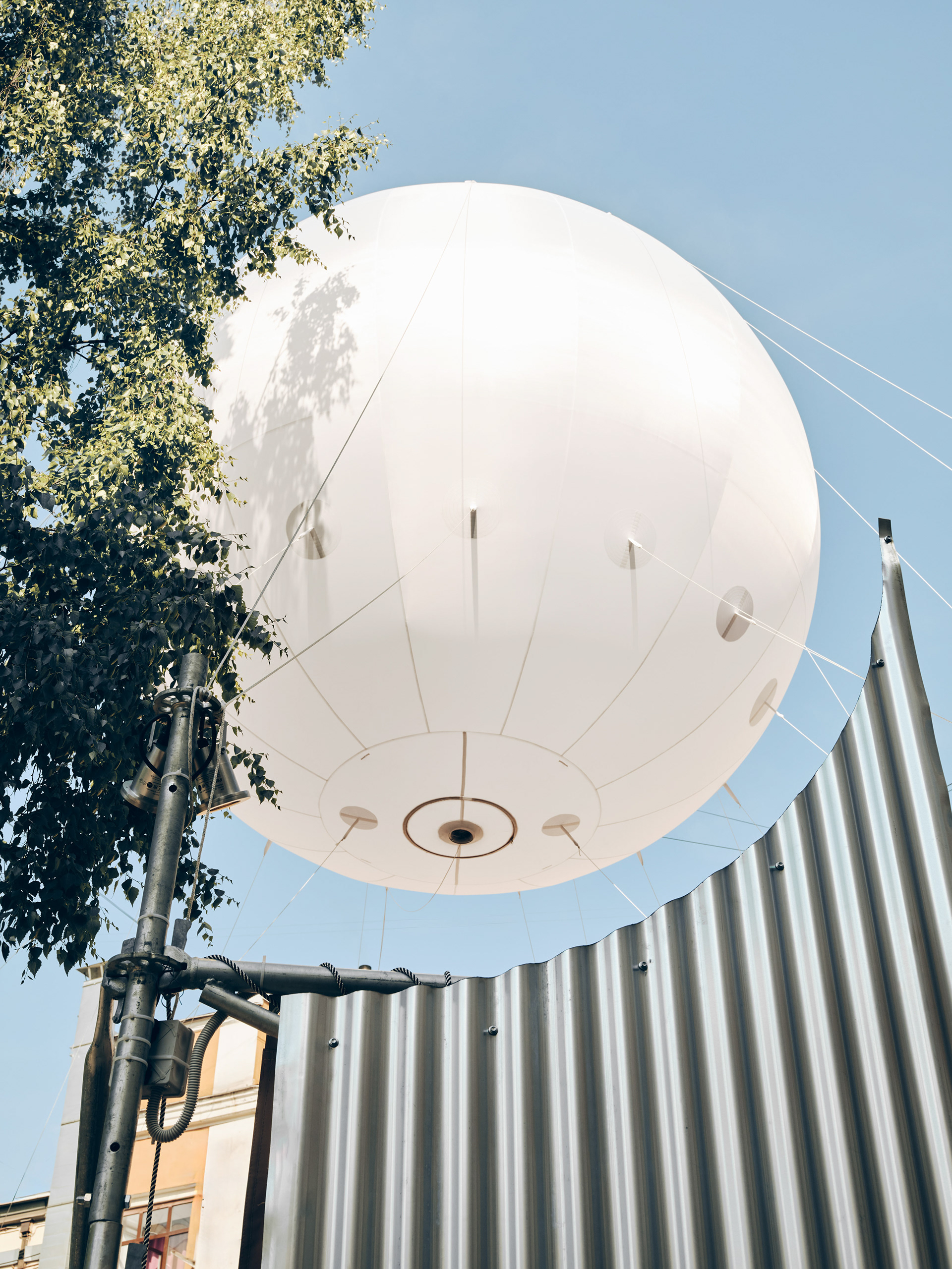 We have created a multifunctional pop-up venue in the city, intended for various events throughout the summer. For example, on the day it opened, the Society of Young Architects held a workshop on creating lighthouses from plaster and sand. We then gave a lecture on our design approach, and in the evening, DJs performed in the same space. People danced barefoot on the sand under the glow of spotlights illuminating the balloon.