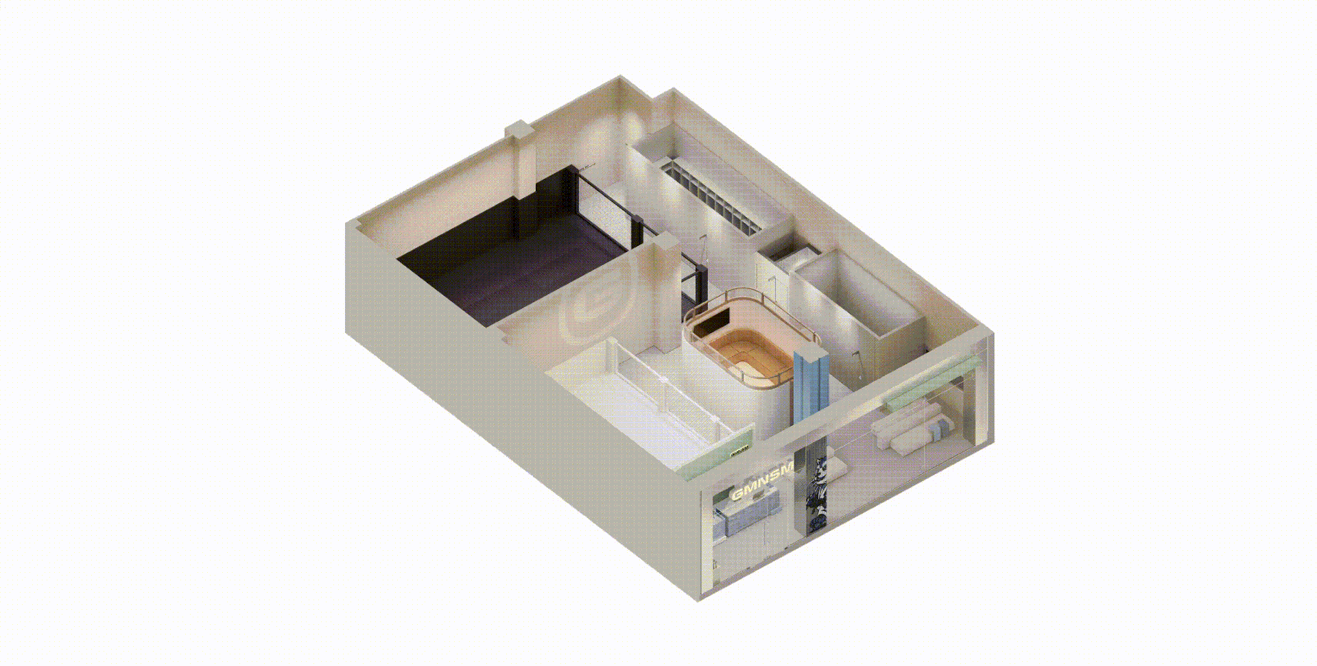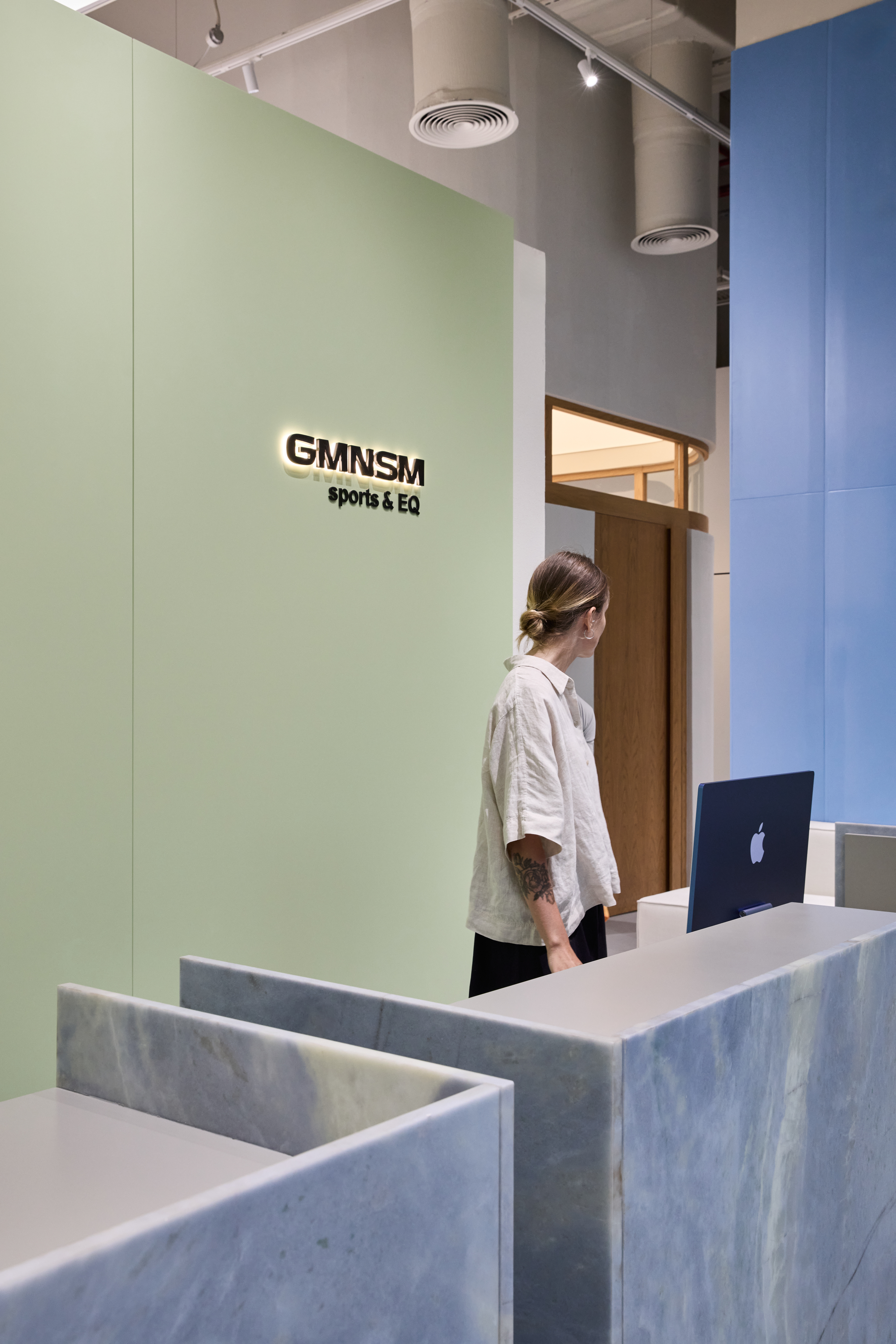 Materials are rooted in Gymnasium’s recognizable language — wood, stone, and stainless steel.