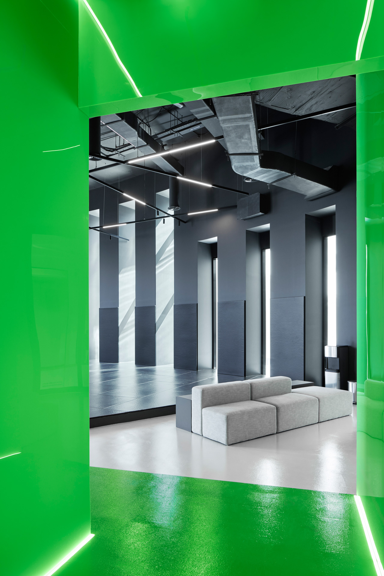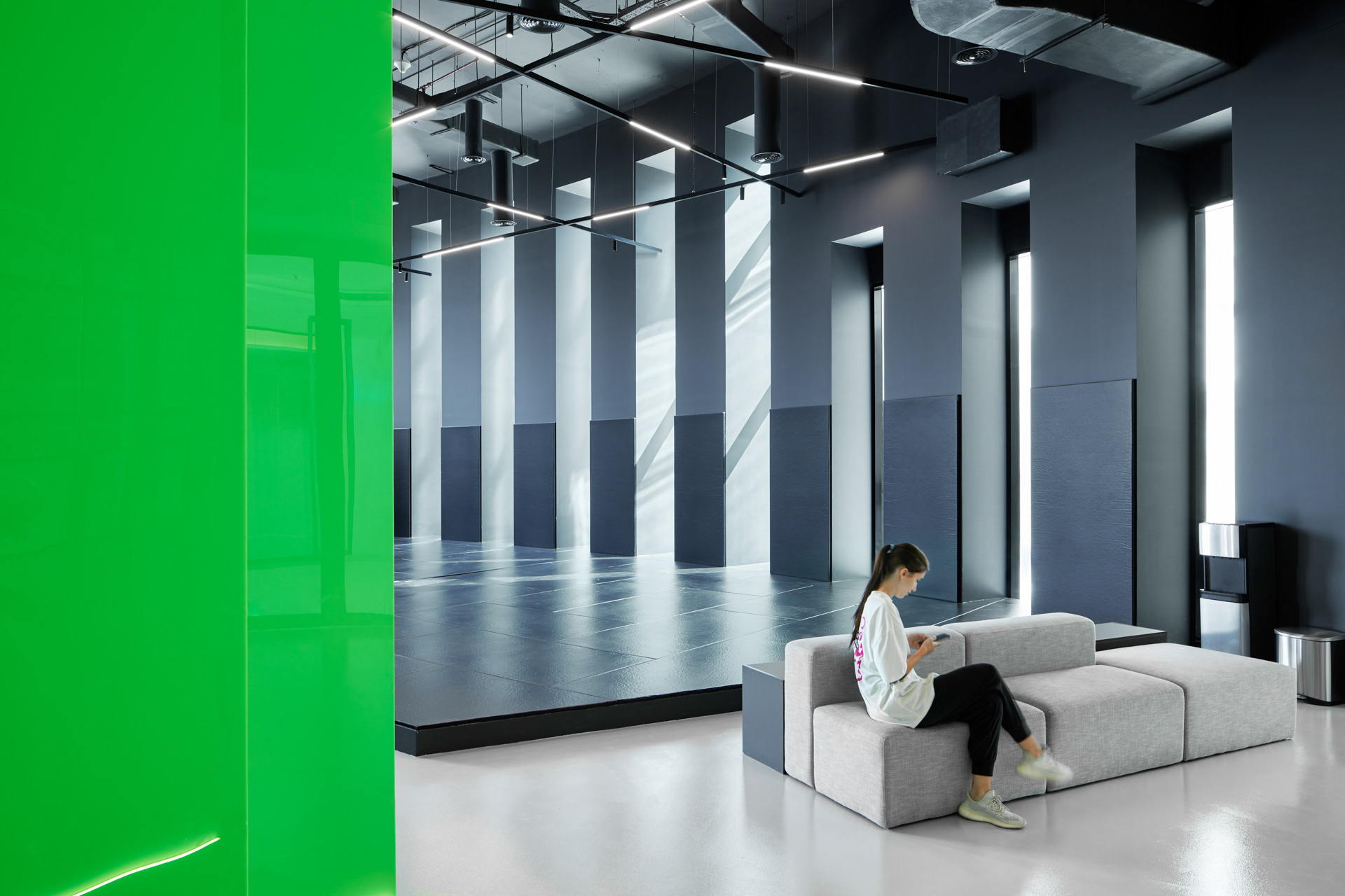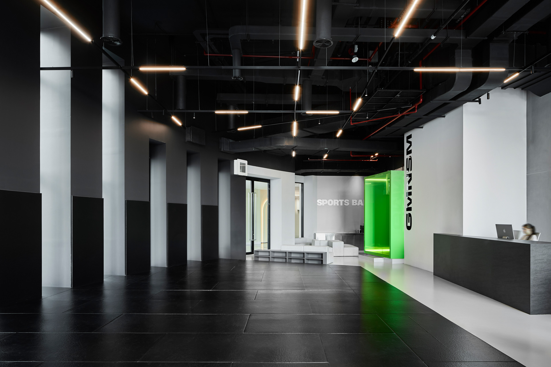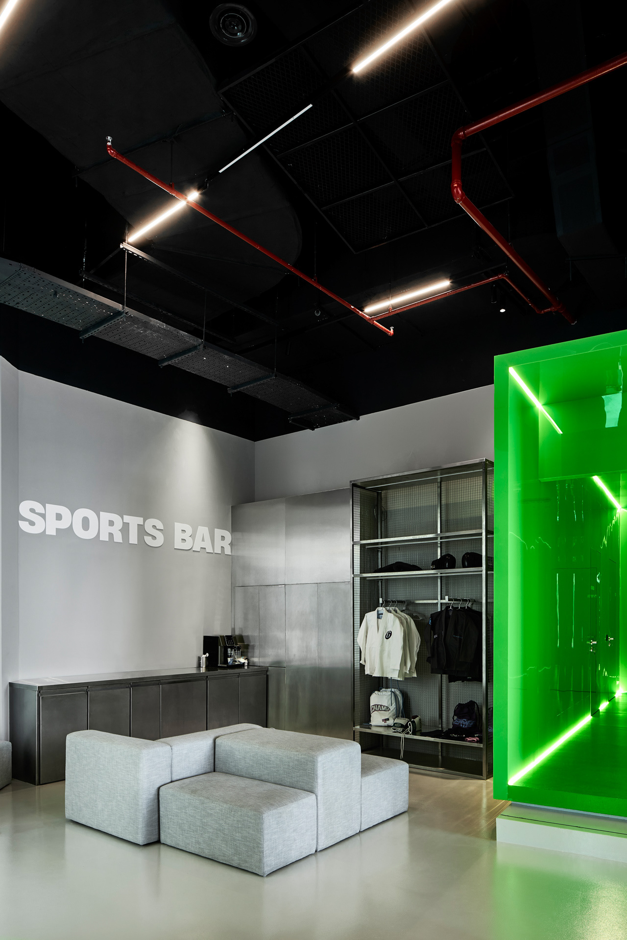 The design features many subtle details inspired by the jujutsu aesthetic. Modular sofas with an uneven layout borrow their morphology from the tatami - an integral part of any wrestling competition. The lighting design adds graphics and detail to the clean space - long, thin lines cut through the air throughout the club area, contrasting with solid blocks of color. Track lights located on these lines in a strictly defined order highlight the main directions of the planning solution with bright light accents.