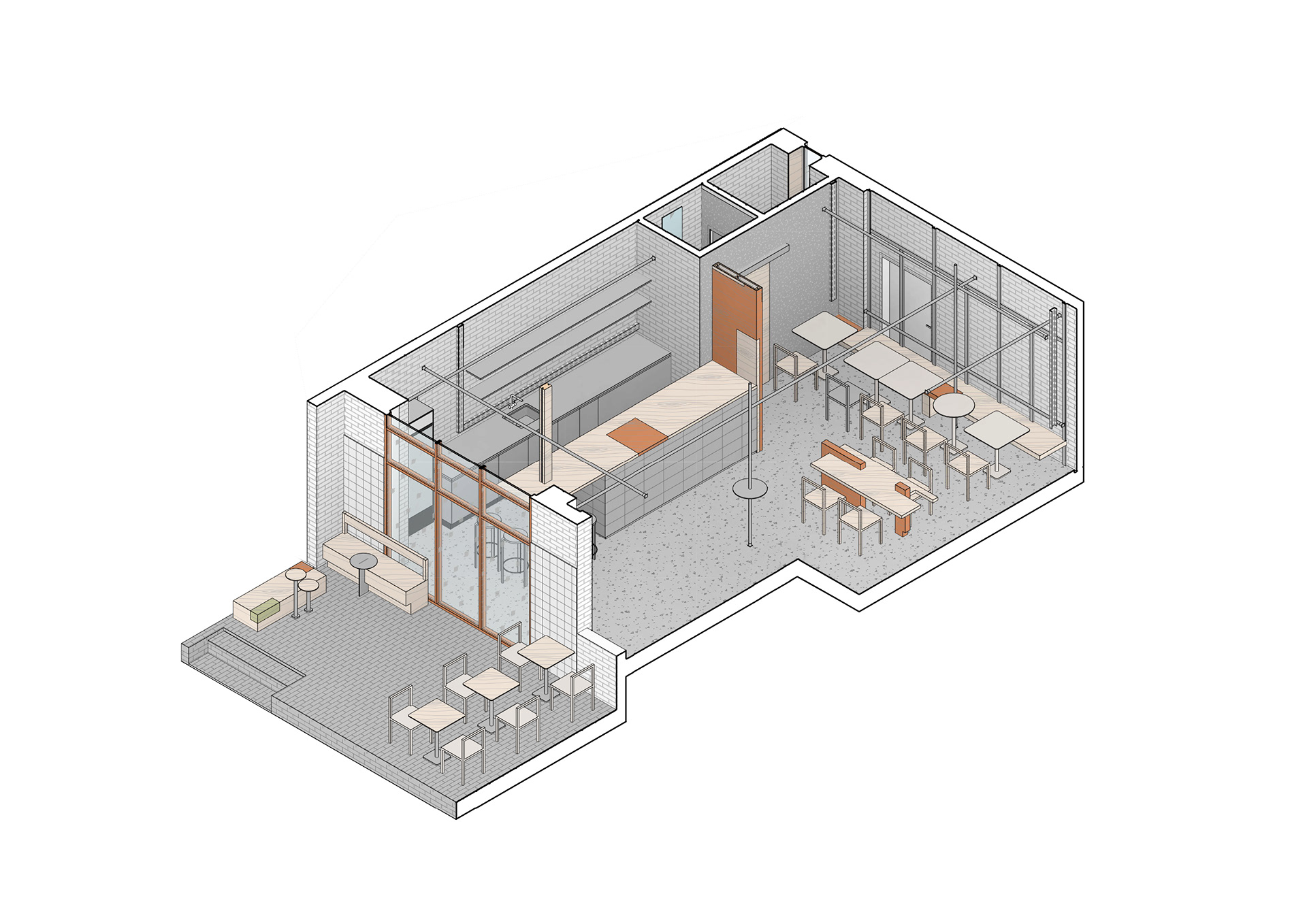 The first meeting, held in July 2023, kicked off the project. We were asked to maximize its vision of the ideal guest space. Analyzing the locations of the Kafeterija, we captured the spirit of the workshop, where each product is unique and the interiors emphasize craftsmanship and natural materials.