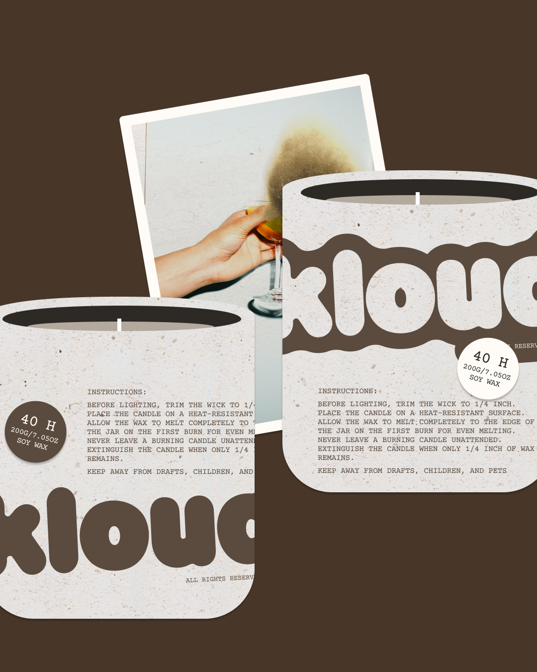 We tested Kloud on everything — from candles to stickers, menus to signage. Each surface spoke the same soft, generous language. Even embossed, backlit, or printed, the curves stayed gentle, the mood stayed intact.