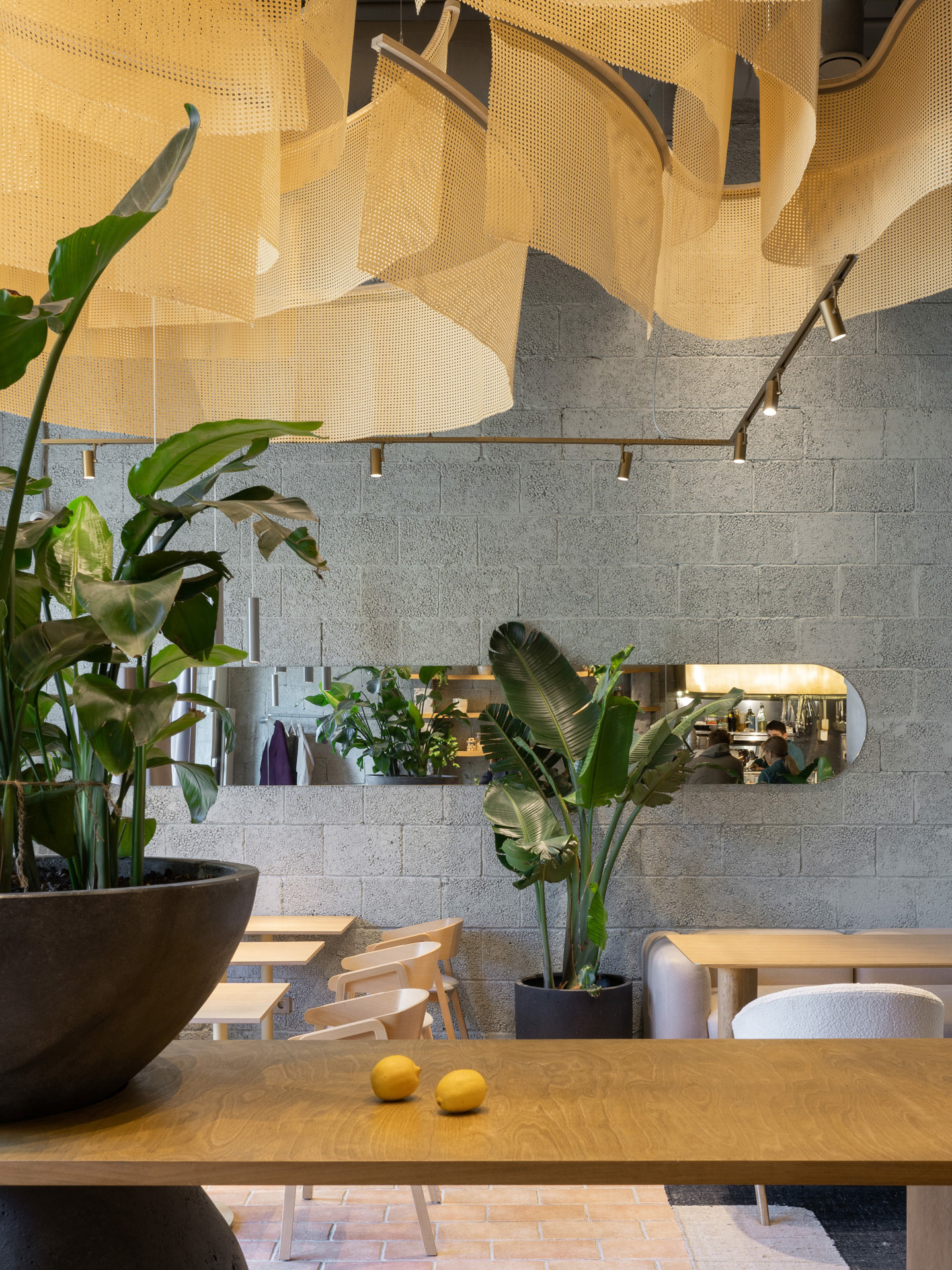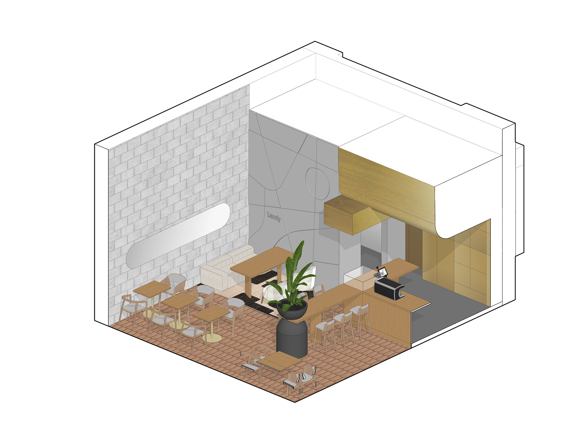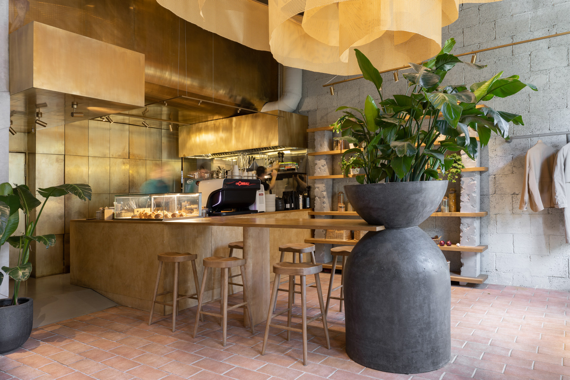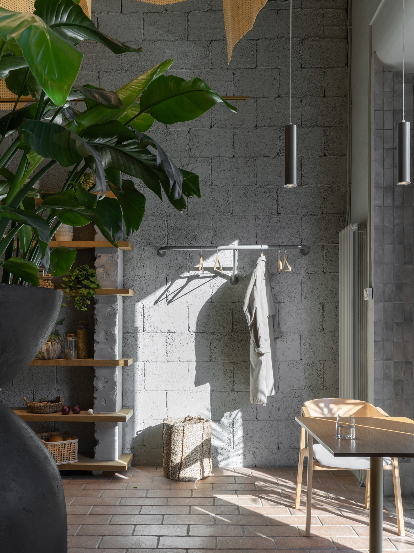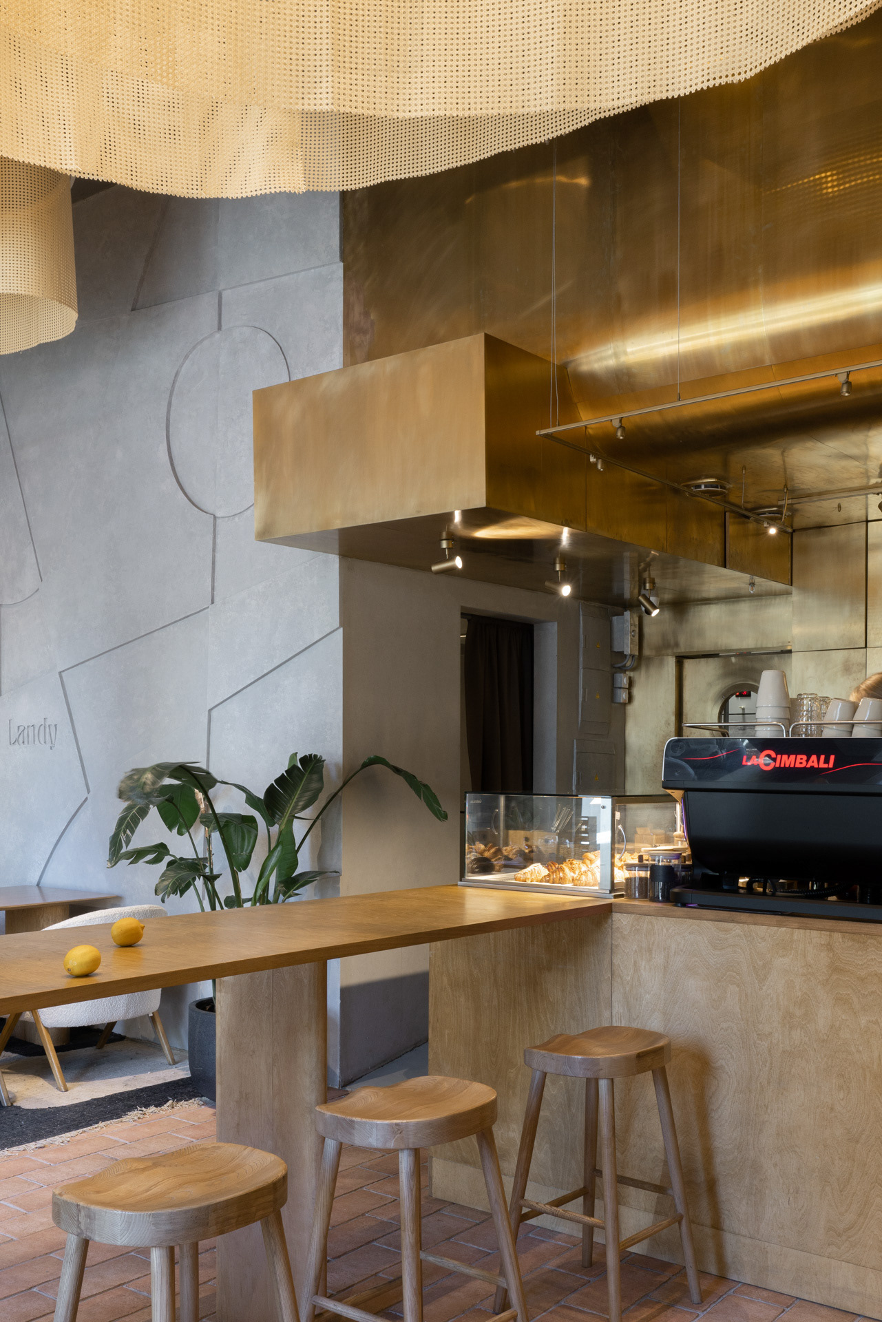 Cafe "Landy" is a true gem in the heart of the city, where every guest is welcomed with the warmth of Balinese hospitality. From the moment you step inside, you are transported to a tropical paradise, where lush greenery and natural materials blend harmoniously to create a unique atmosphere of comfort and relaxation. Founded by Anastasia Voznyuk, "Landy" was born out of a passion for creating a space that felt like a second home. A place where guests could come to unwind, indulge in delicious food, and bask in the company of good friends. And that is exactly what she has achieved. From the cozy seating areas to the stunning decor, every detail has been carefully curated to make you feel right at home. One of the most striking features of the cafe is the contrast of materials. The luxurious elements, such as the natural brass fixtures, plush couches and armchairs, and the intricate woodwork, are beautifully juxtaposed against the rough textures of the unfinished foam blocks and cobble
