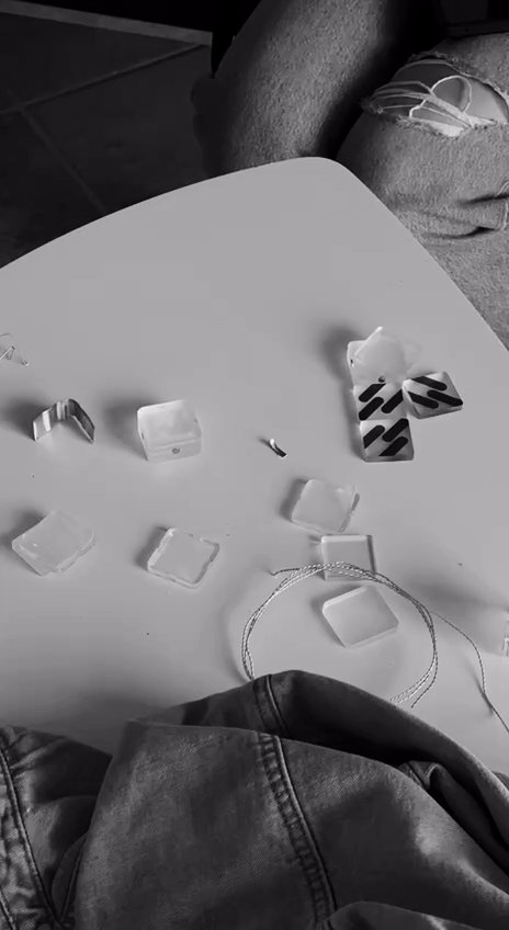 As for the material, we chose semi-transparent matte plastic in a square shape. We made a sandwich of three layers, inside which we embedded magnets. These magnets securely connect the mahjong tiles, and the sound of their connection is incredibly soothing.