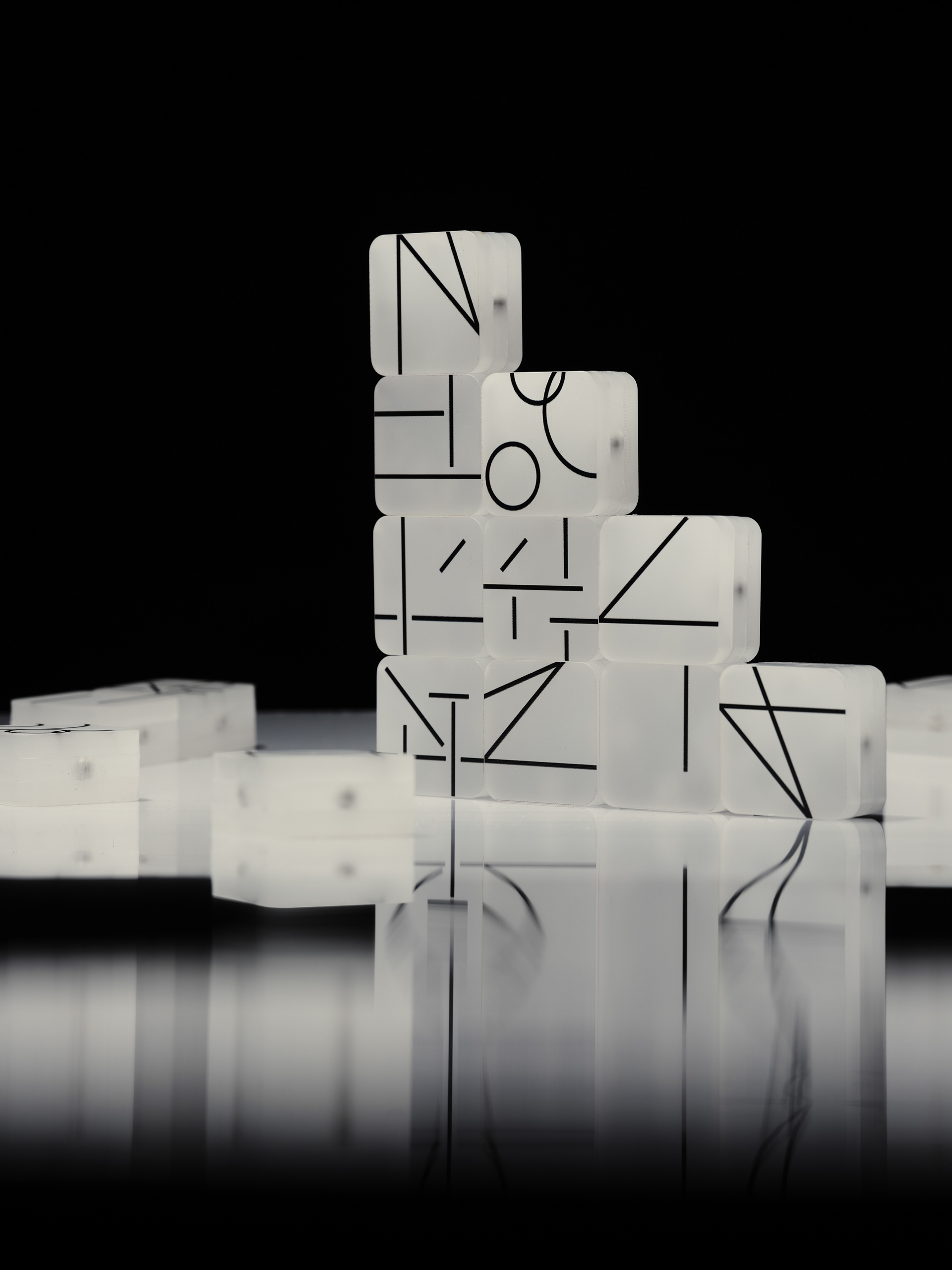 The mahjong we created is essentially more like a meditative puzzle — each tile is equipped with magnets on all four sides, with an abstract design on the surface. This allows for endless ways to connect the tiles and create new images.