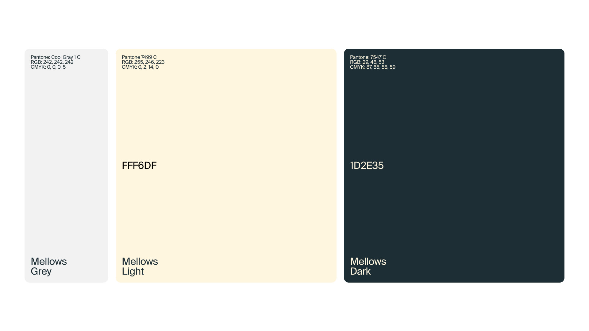 The palette reflects Mellows’ wholesome, grounded energy — soft, natural, and quietly bold. Warm Cream, Pale Yellow-White and Deep Blue-Green — together, these tones create a sense of clarity and warmth — the visual equivalent of a deep breath.