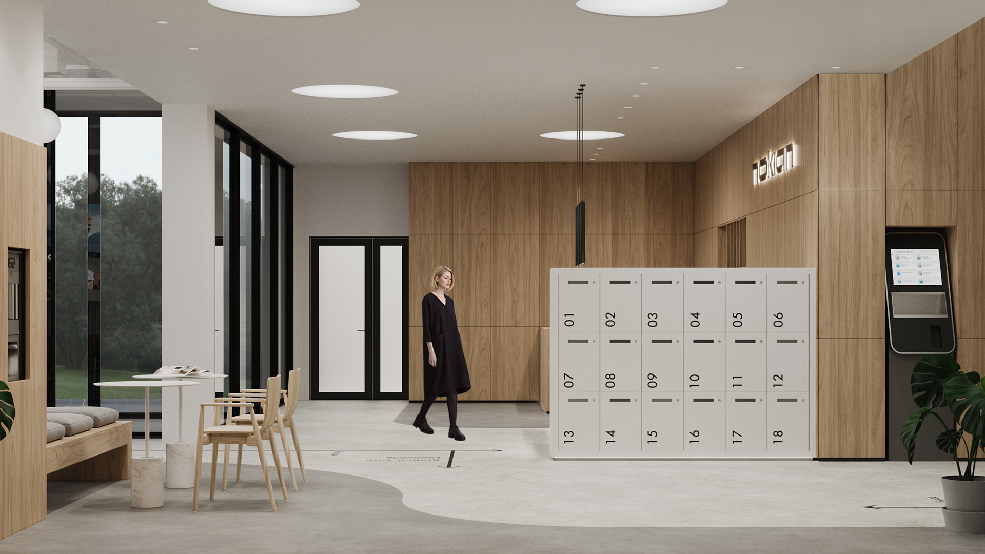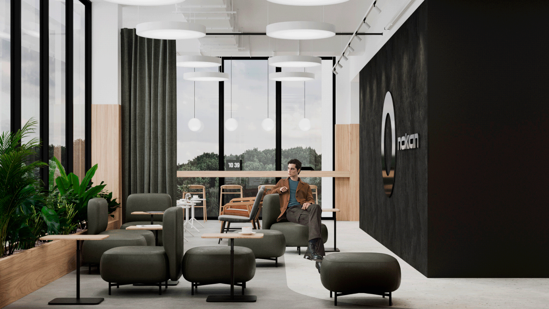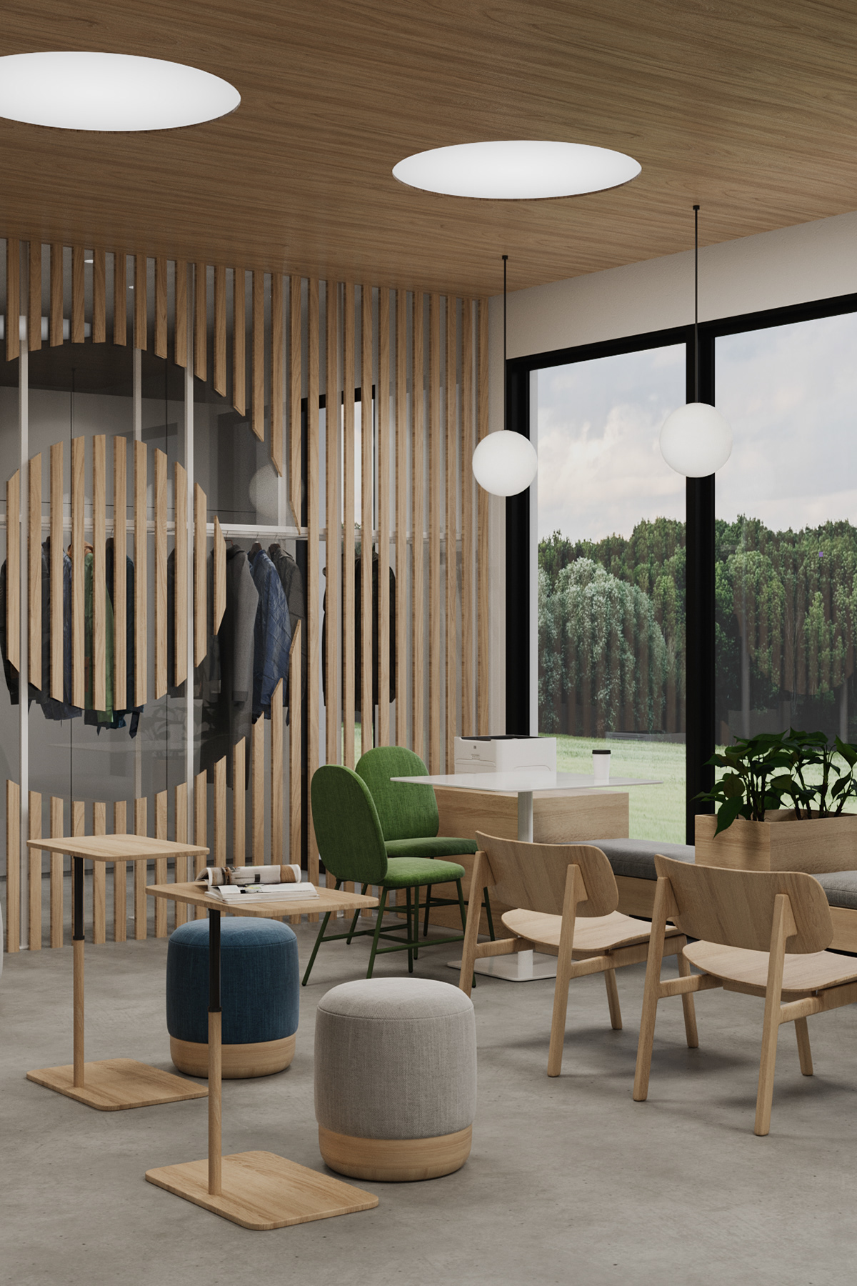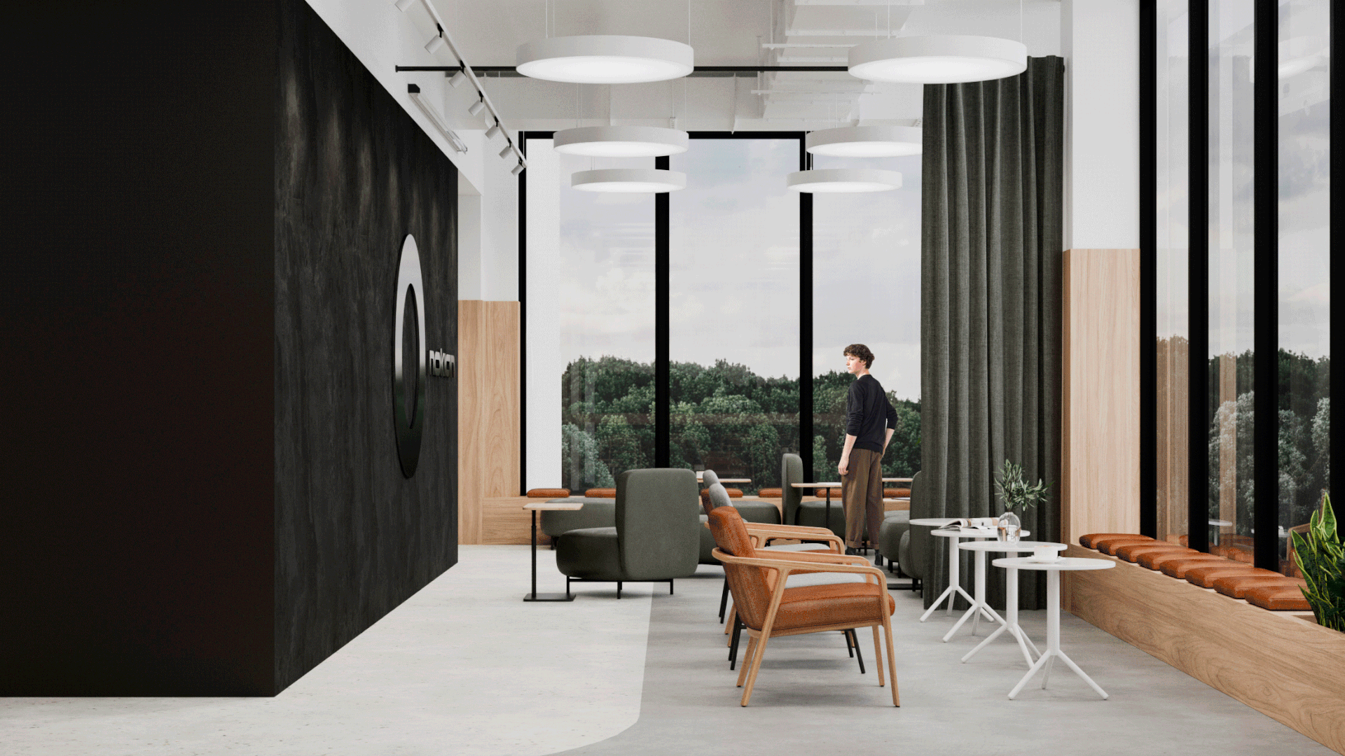 Nokian Tires is a Finnish tire manufacturer, which means it is connected to the entire automotive industry and the road structure. The interior concept is based on the interpretation of the street theme and the Scandinavian spirit. The street theme (road markings, tire tracks) is implemented delicately - in the drawing of different floor coverings and navigation. Navigation serves as an additional source of information and complements the interior