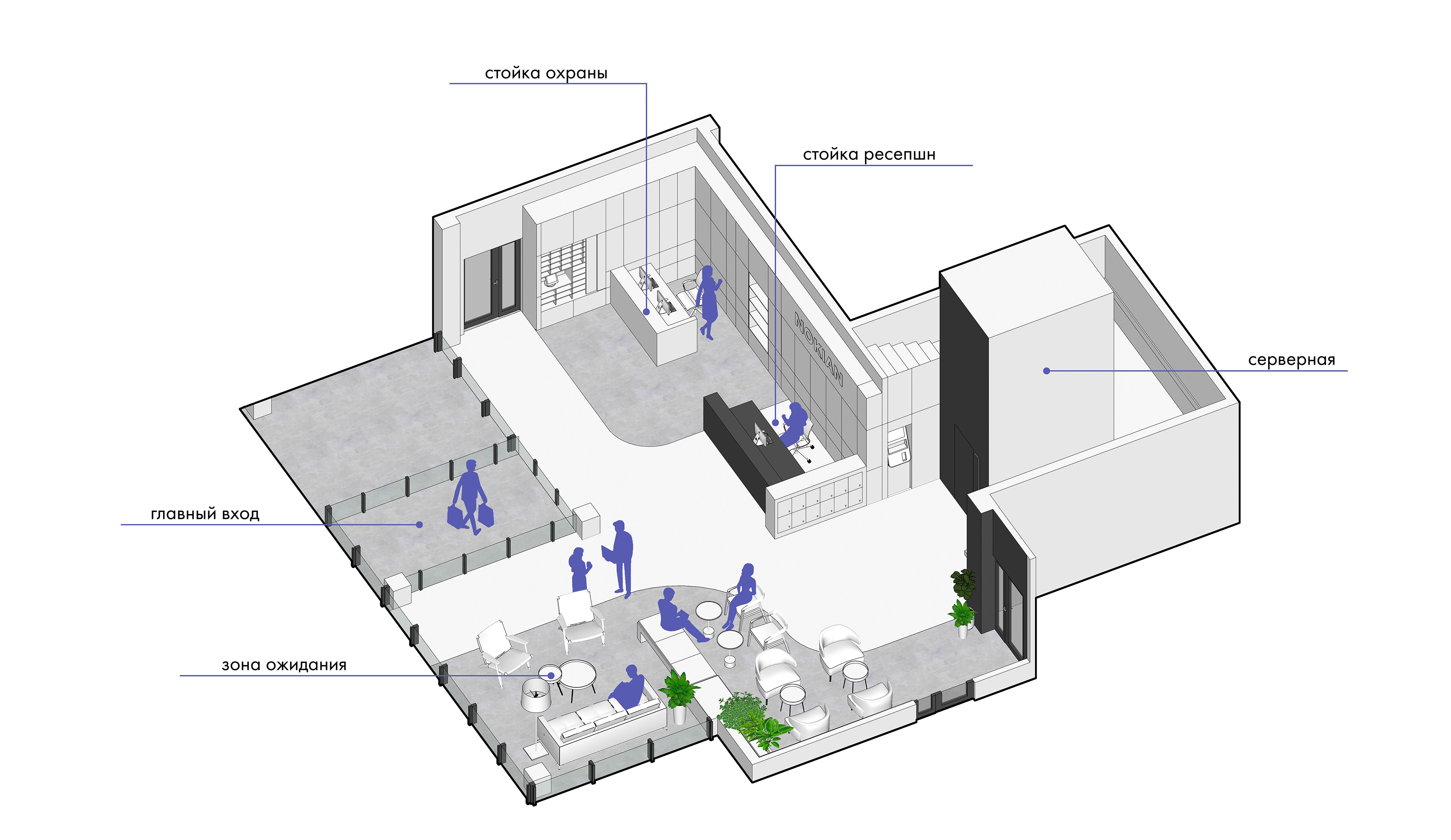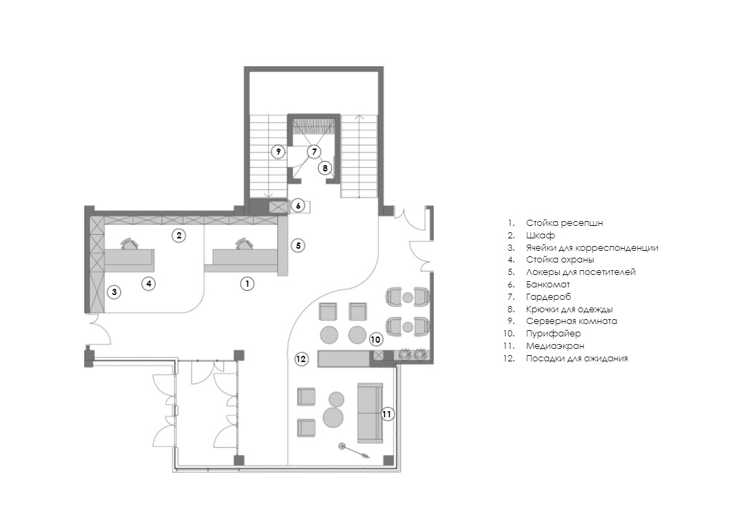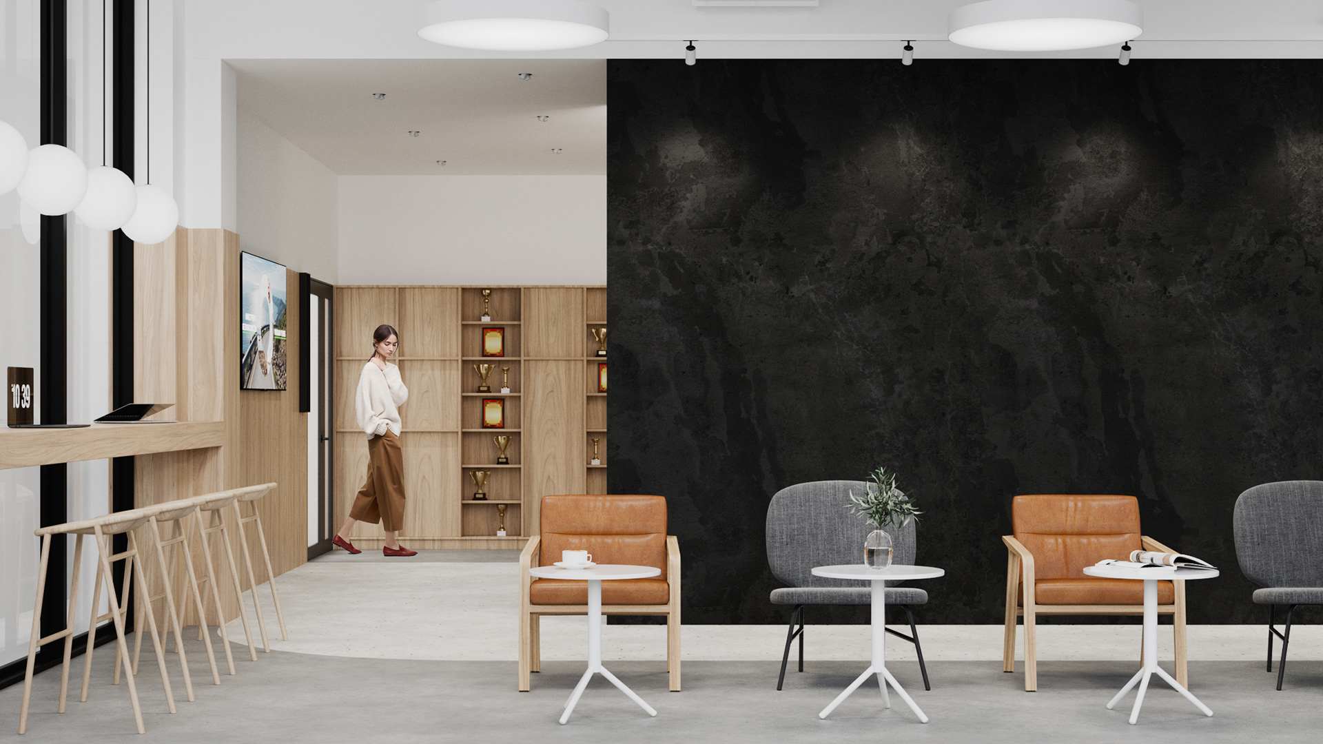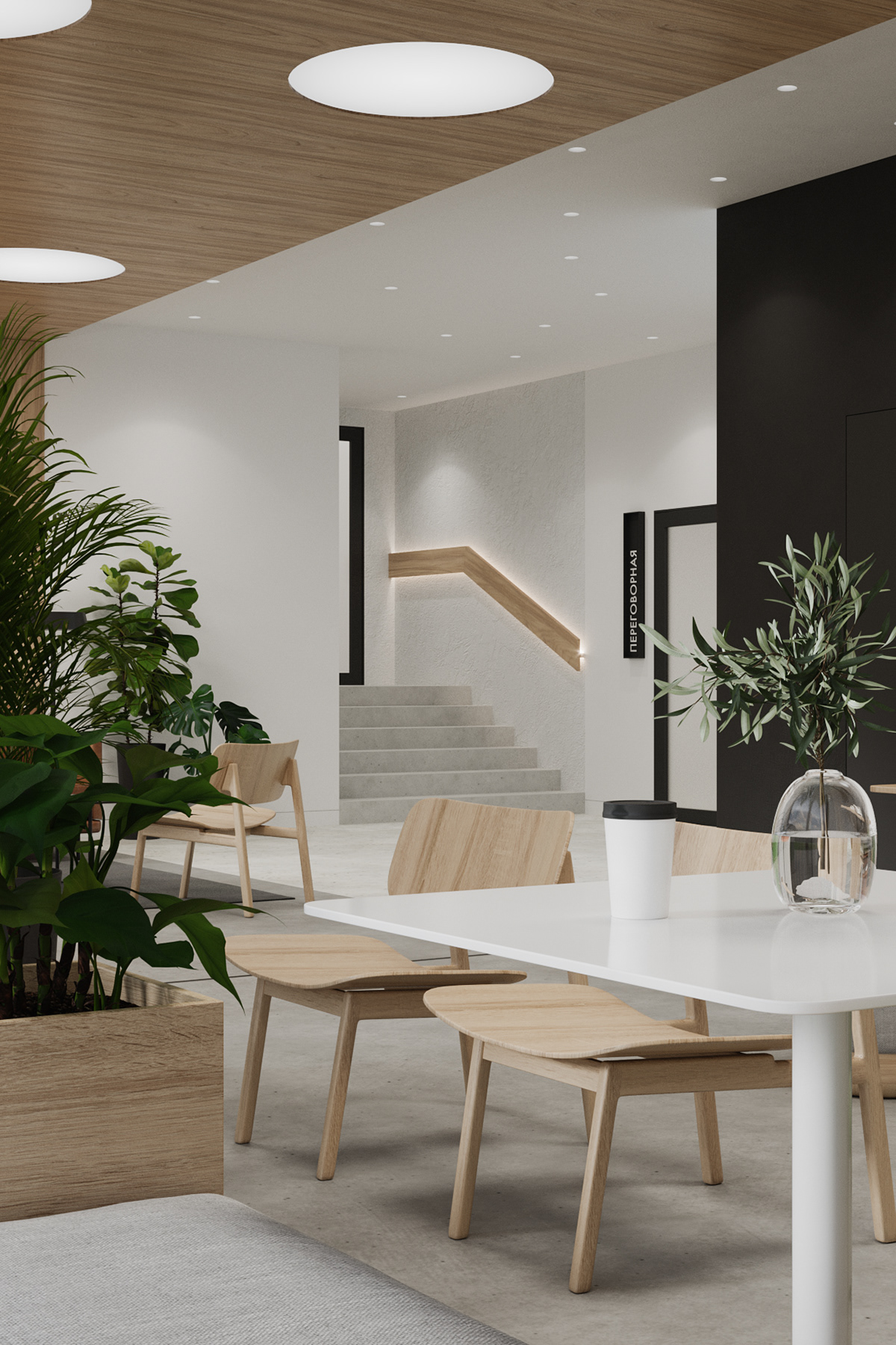 Nokian Tires is a Finnish tire manufacturer, which means it is connected to the entire automotive industry and the road structure. The interior concept is based on the interpretation of the street theme and the Scandinavian spirit. The street theme (road markings, tire tracks) is implemented delicately - in the drawing of different floor coverings and navigation. Navigation serves as an additional source of information and complements the interior