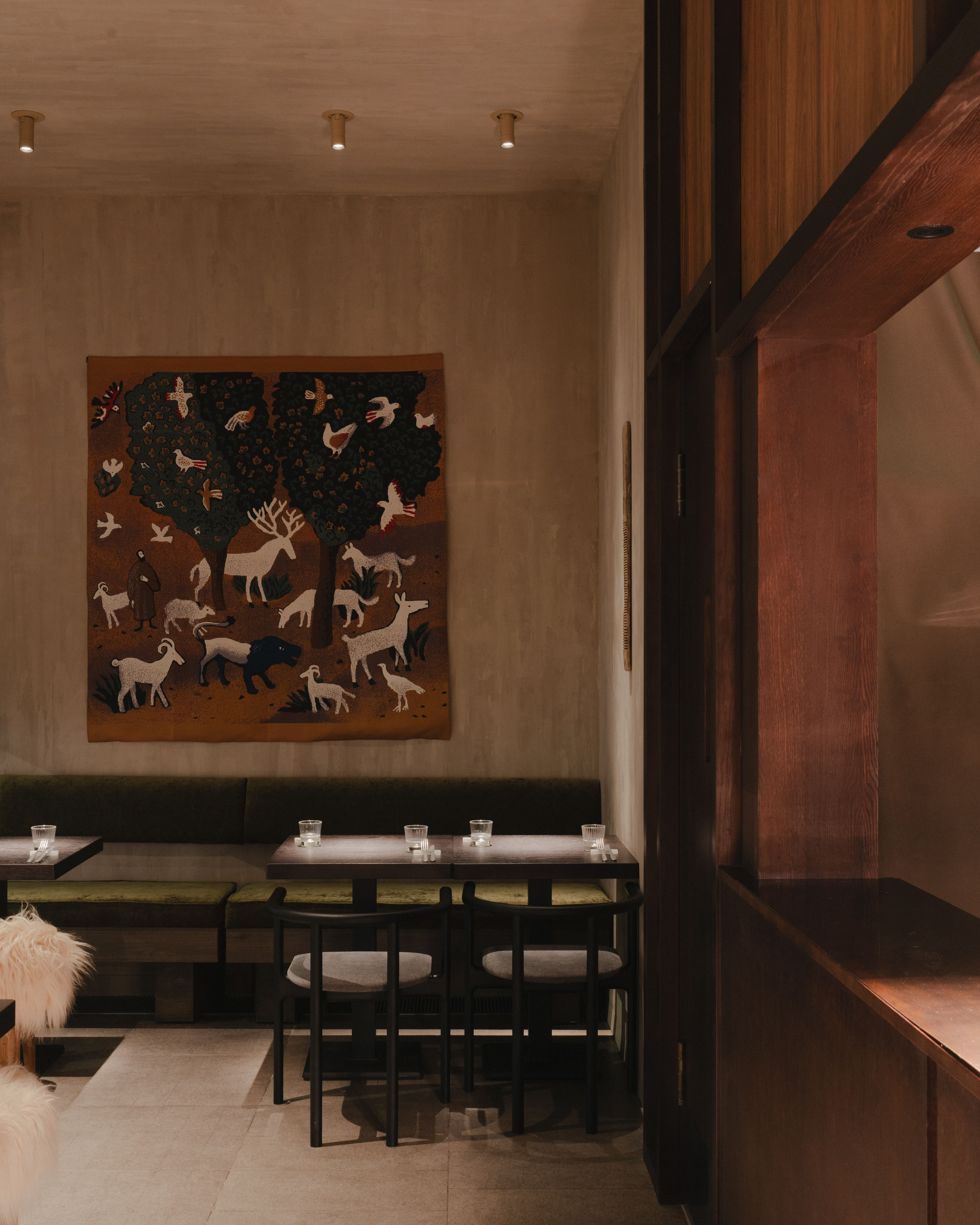 Our main challenge was to convey the spirit of Georgia without resorting to clichés often found in other Georgian establishments. To achieve this, we conducted a deep, sensory exploration of the country’s rich and multifaceted culture, nature, and spiritual heritage in order to create a space with a distinctive atmosphere.
