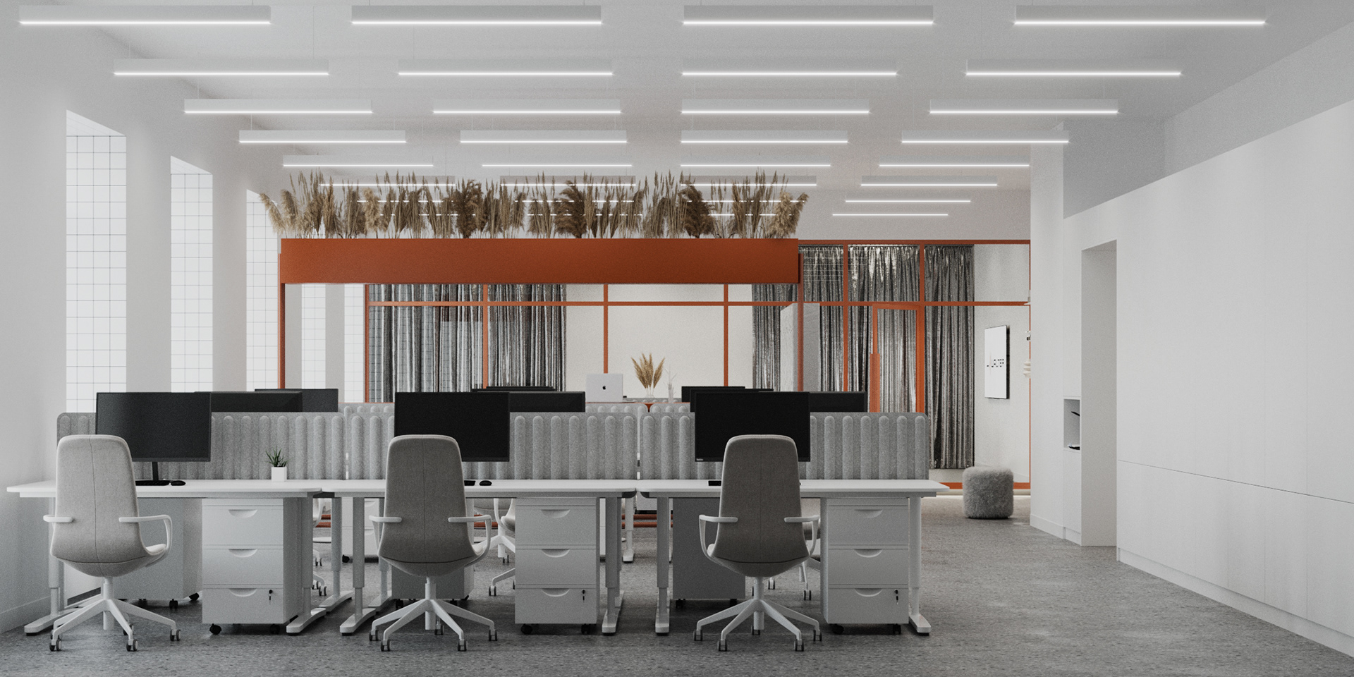 In the design, we have emphasised the fact that the company primarily works with metal - it is used in the decoration of walls and furniture, and even the fabric separating the meeting room from the office space is metallic. The main colour scheme is neutral, and the main emphasis is on terracotta, as a reference to the glowing metal.
