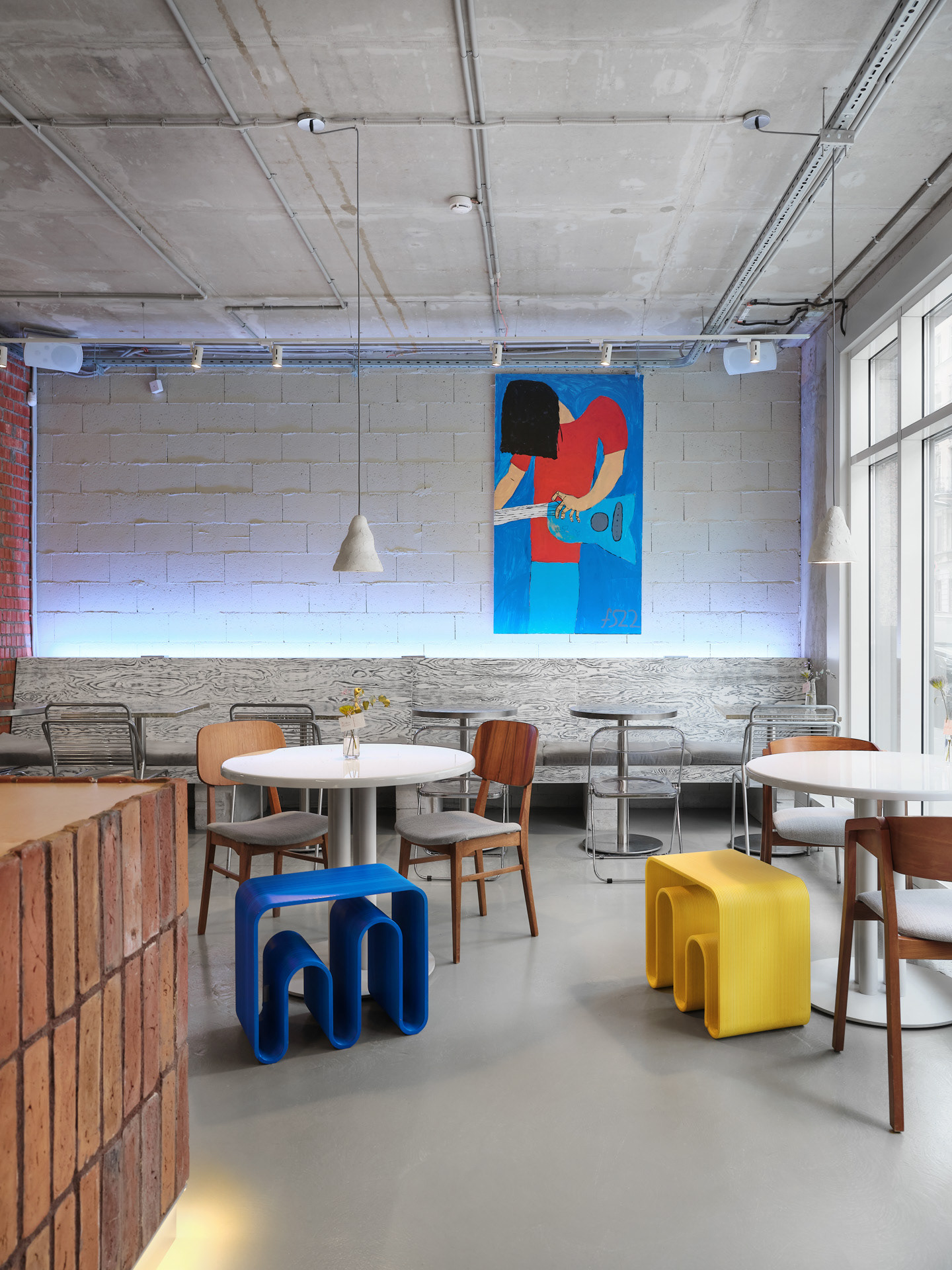A quiet breakfast changes to a crowded party in the evening, the noise of the city center in the middle of the day can turn into a quiet gathering in a comfortable chair by the window, the atmosphere becomes more intimate, and the bar in the center will turn into a DJ table by Friday.
