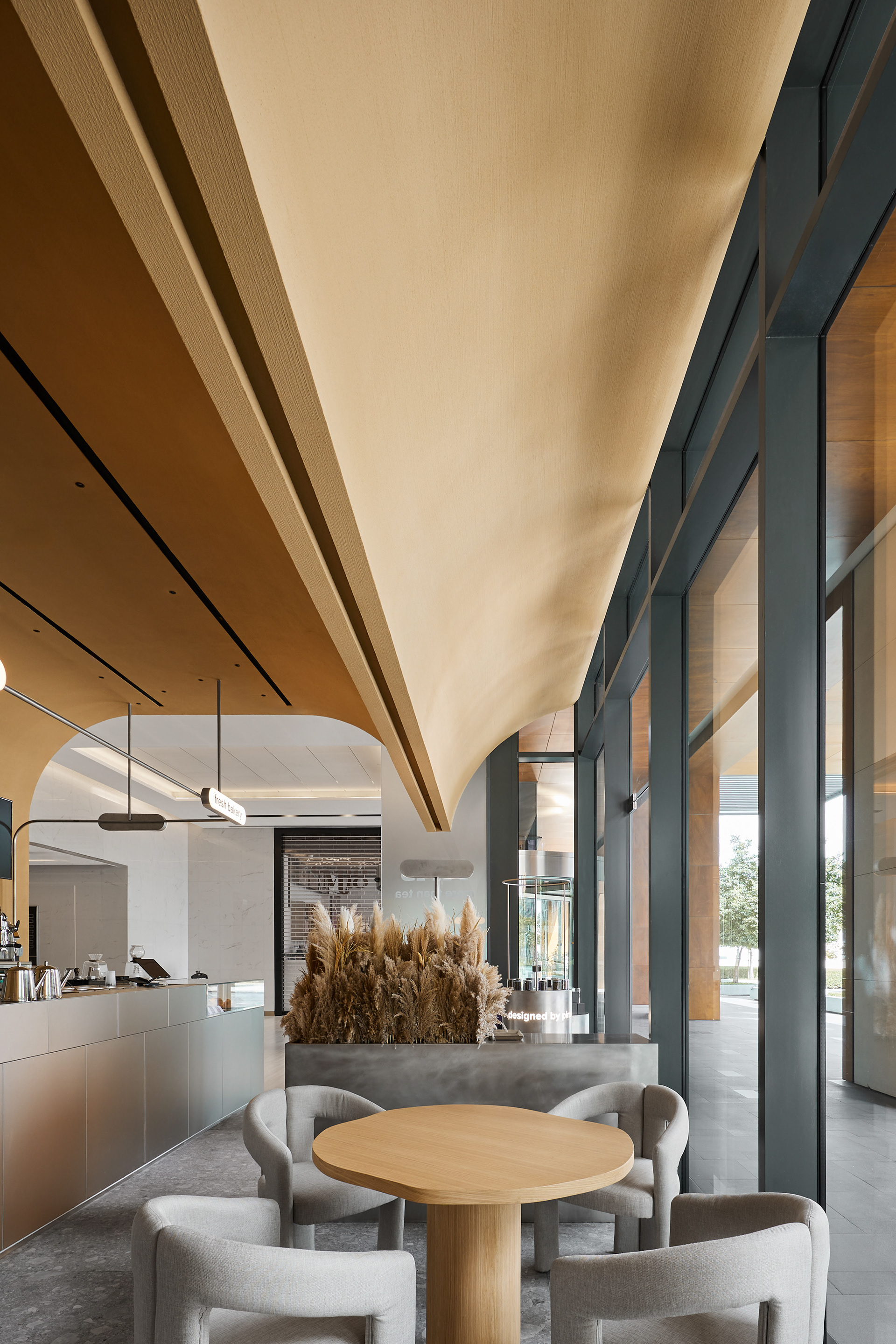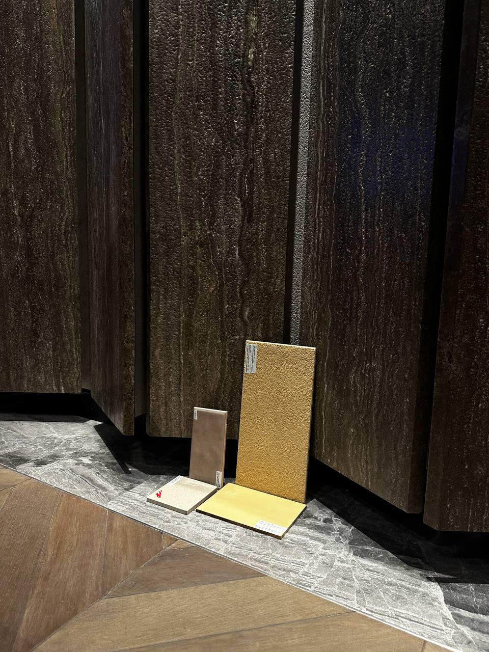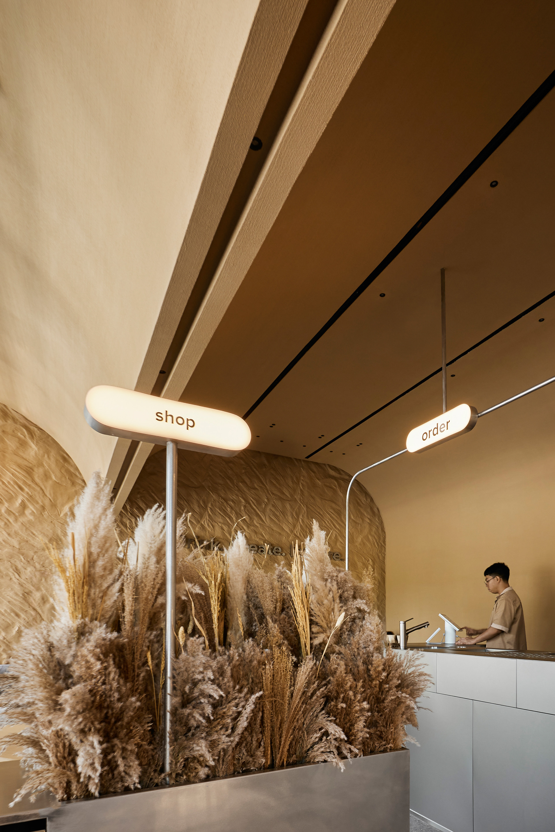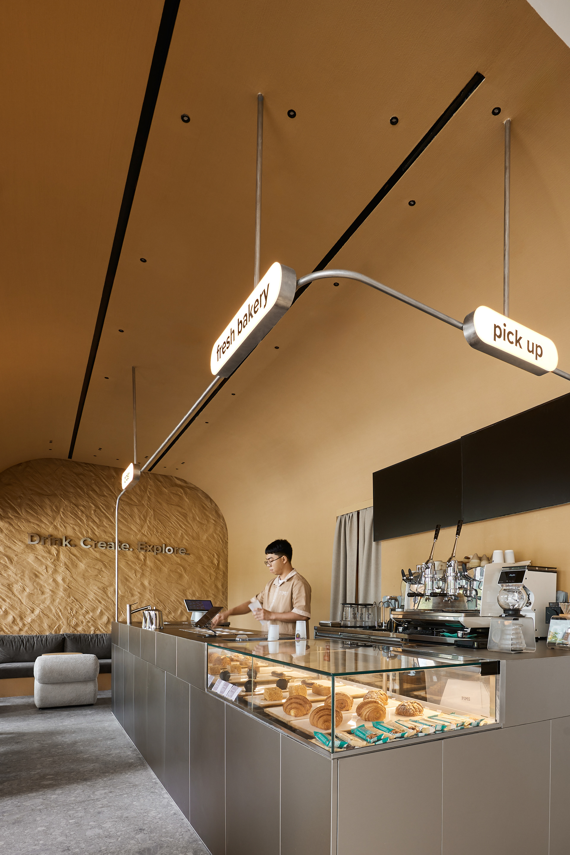 In the new establishment, we emphasized continuity with the first version of the venue: using sandy textures, and beige-golden elements in contrast with matte metallic panels.
