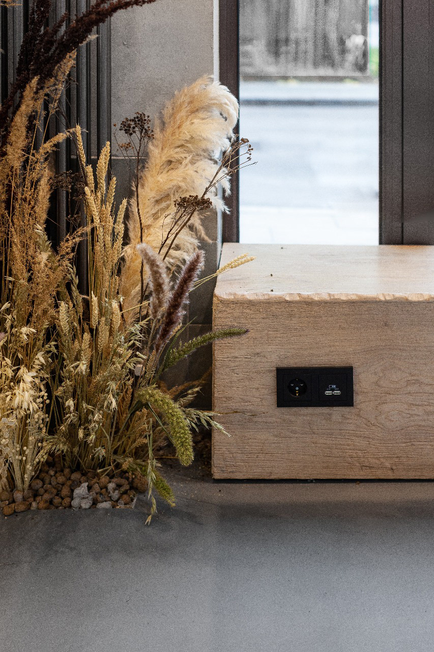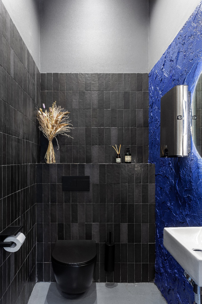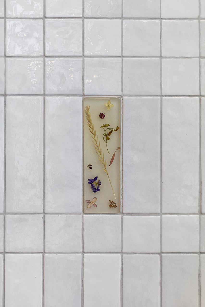 The main, but not noticeable at first glance, semantic accent of the space is a transparent tile with flowers and herbs frozen in it - like tea, decorated with fragrant petals and leaves. By embedding the symbol of tea in the walls of the teahouse, we physically and visually reflect its inalienability from PIMS