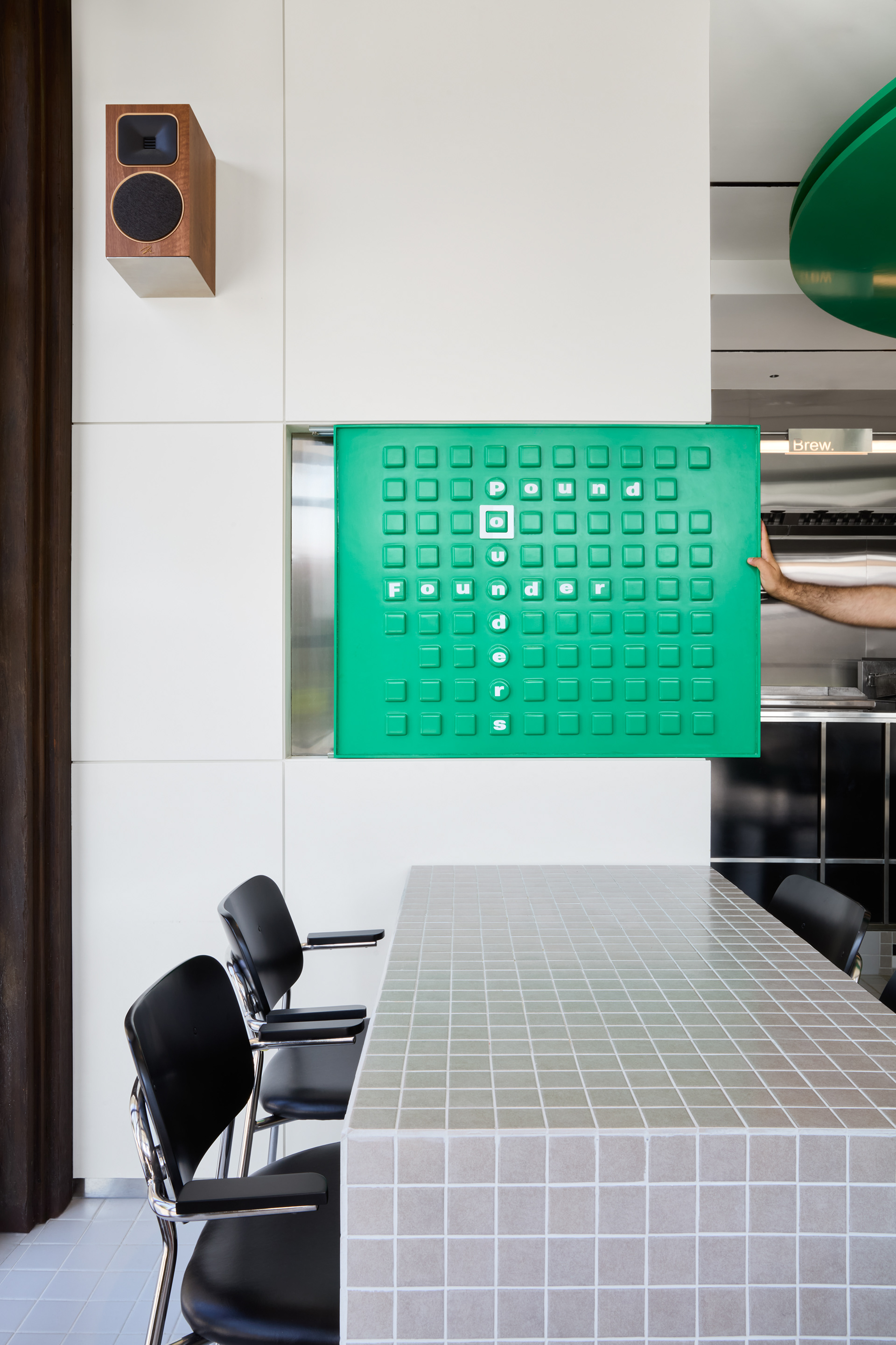 Our goal was to create a space that would become a true “third place” for people, where they could enjoy everyday moments. At the same time, the brand’s innovative spirit, reflected in the word founder, had to be expressed in the design through bold and striking elements.