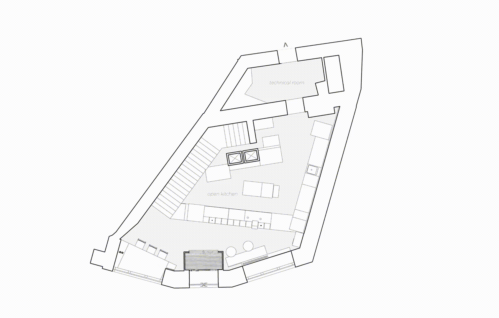 The graphic design by studio öppen became a key reference point, setting the tone and shaping the logic of the forms. We were inspired by the sharp, linear letters of the logo—like “p”, “t”, and “e”—which informed the geometry of furniture, signage, and custom structures.