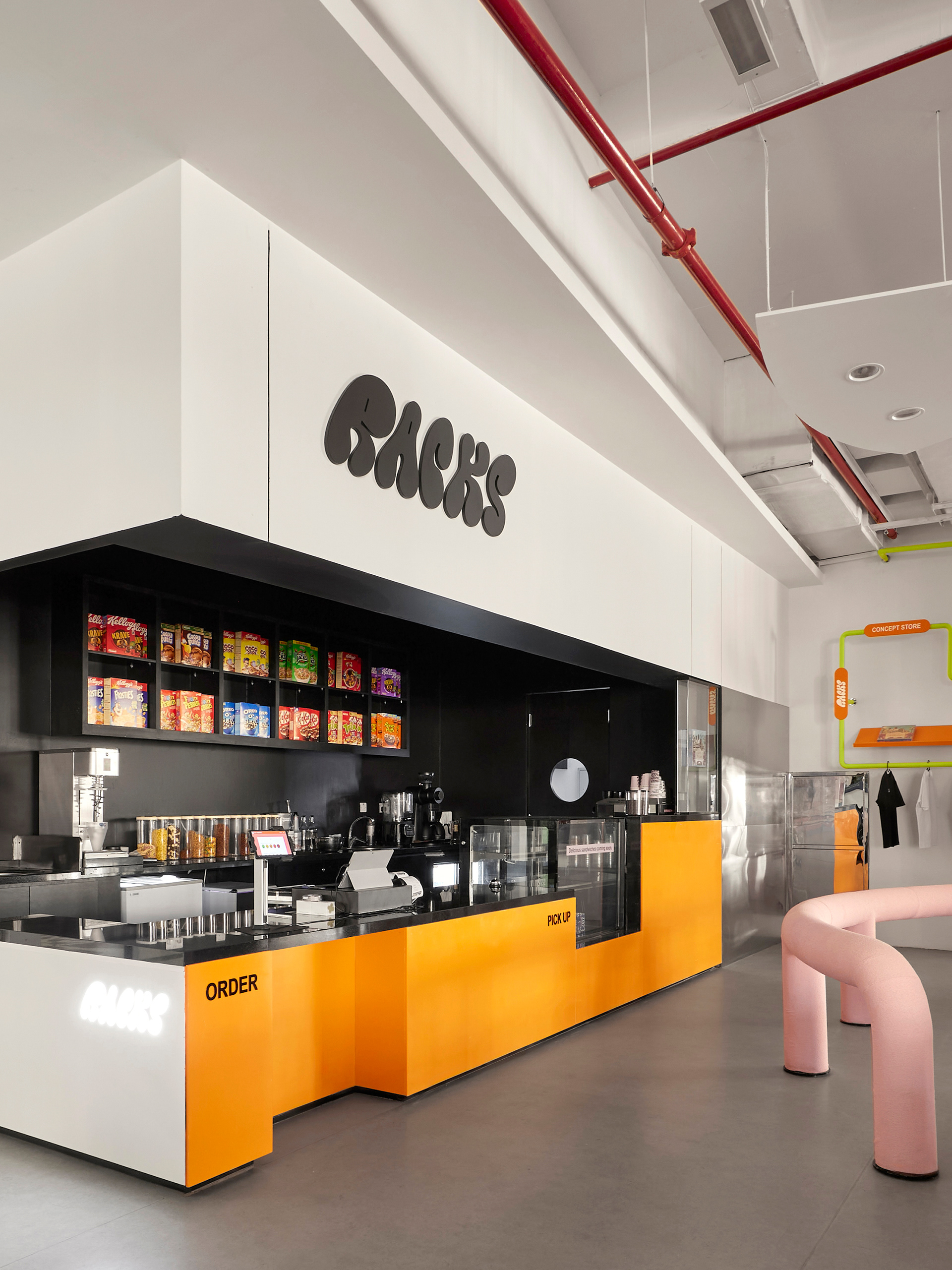 Racks is an unconventional board game café located in Sharjah. The core concept of Racks is to create a space where people can enjoy board games in a stylish and thoughtfully designed environment. The café stands out for its unique design, which is based on gamification and interaction with the space, making it attractive to both younger and older generations.