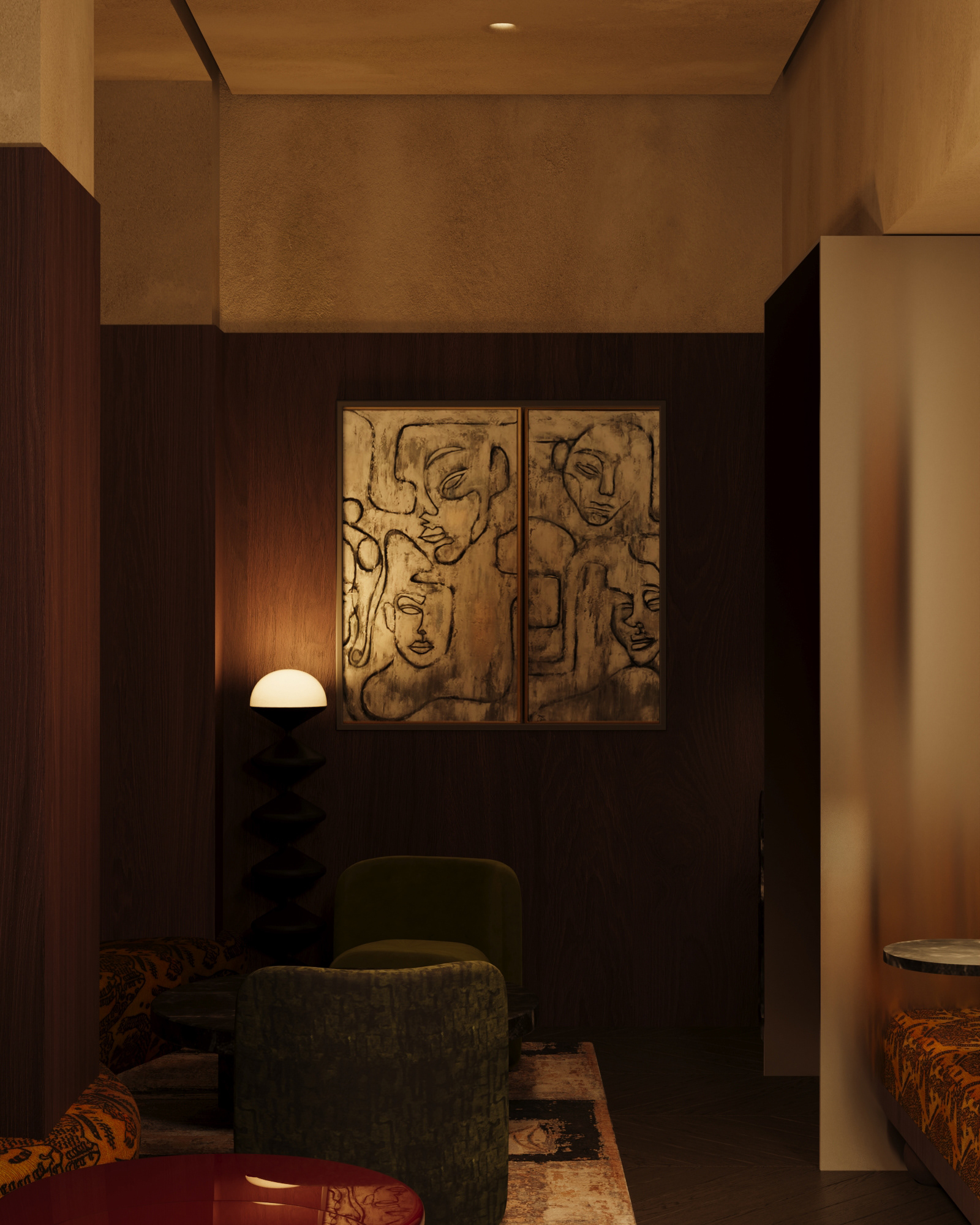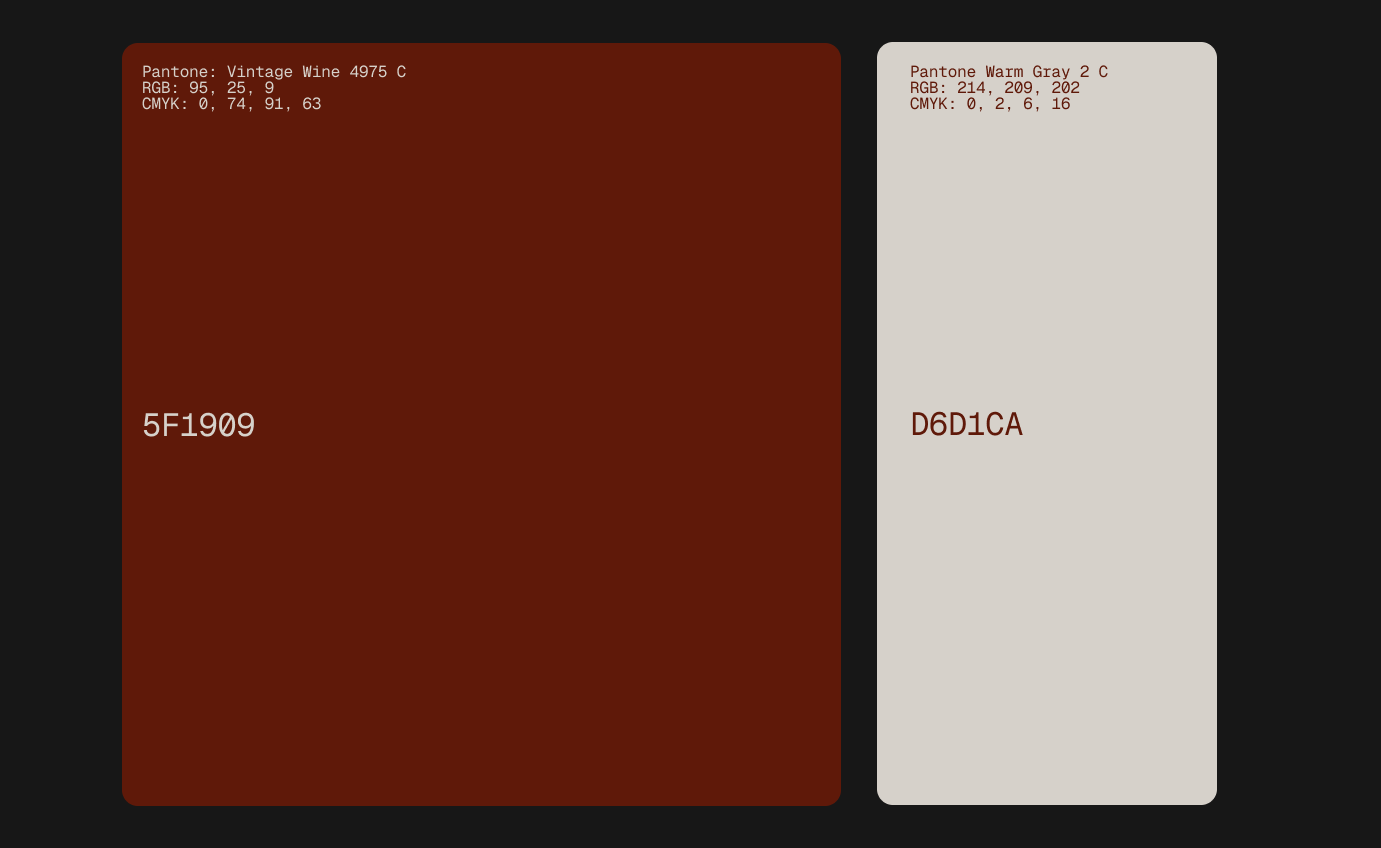 The color palette strengthens the overall atmosphere of Room 20. Vintage Wine introduces depth and warmth — a tone that feels intimate, grounded, and slightly enigmatic, while Warm Gray brings softness and calm, acting as a quiet neutral that lets the darker shade resonate even stronger.