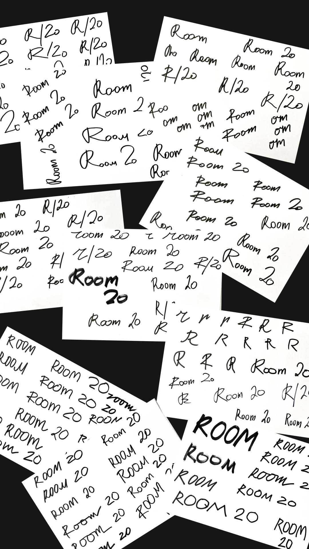 During development, our designers created many handwritten variations, carefully selecting the version that felt most authentic to Room 20. It preserves the essential balance: a sense of comfort paired with intrigue, and a quiet layer of secrecy.