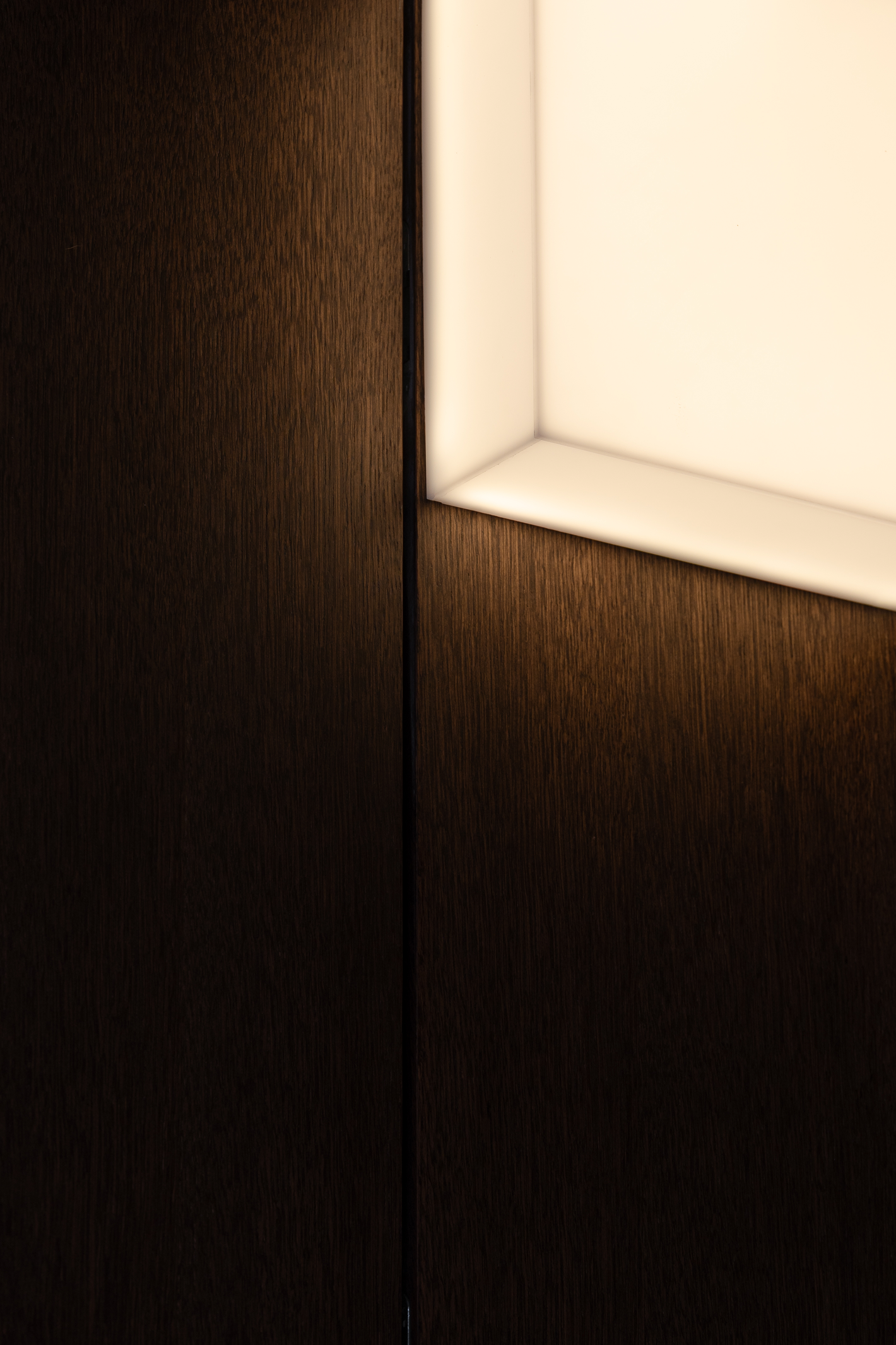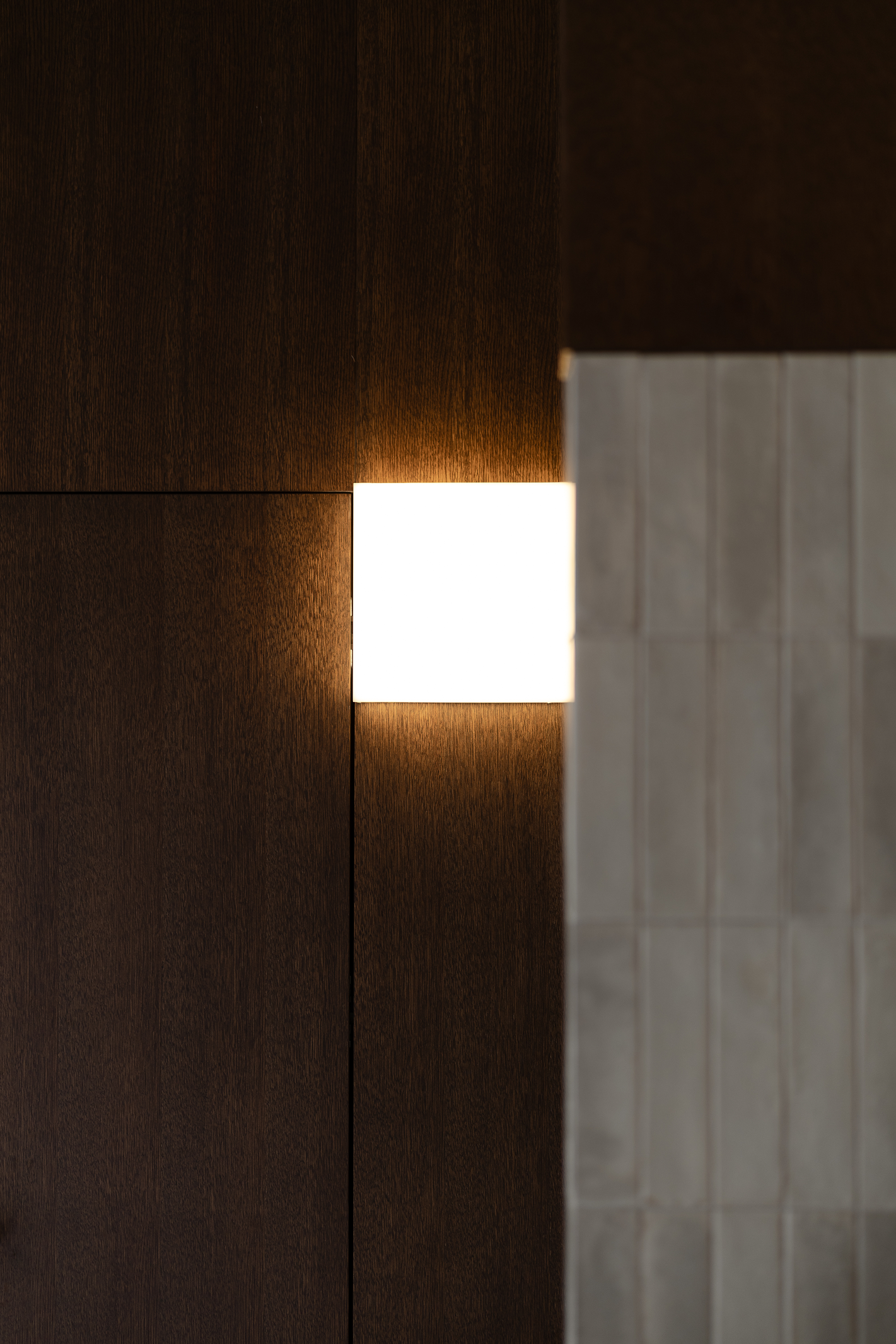 The careful balance of materials and forms creates an interior that feels warm and sensory, yet rational and functional.