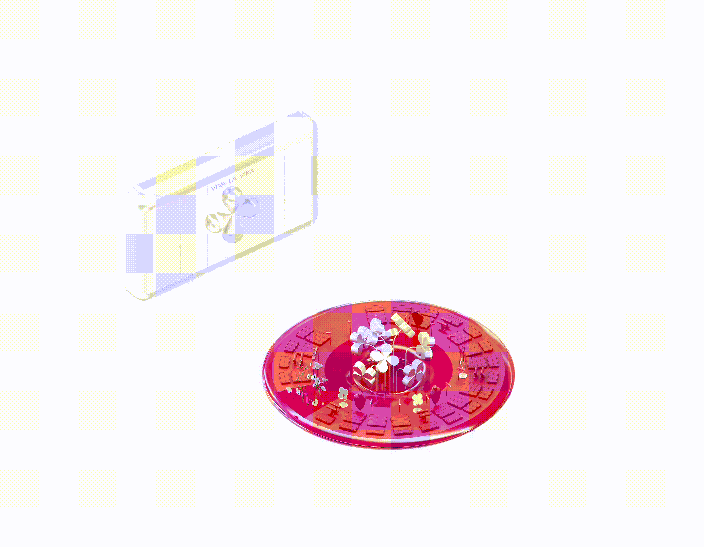 The new Viva La Vika corner continues the brand’s visual identity, developing it through a recognizable play with scale and a “wow” effect. This project further explores the brand’s celestial-cosmic theme: while the first corner in “Metropolis” was inspired by a spaceship, the second corner drew from the northern lights, and now the focus is on a floral vase as the centerpiece.